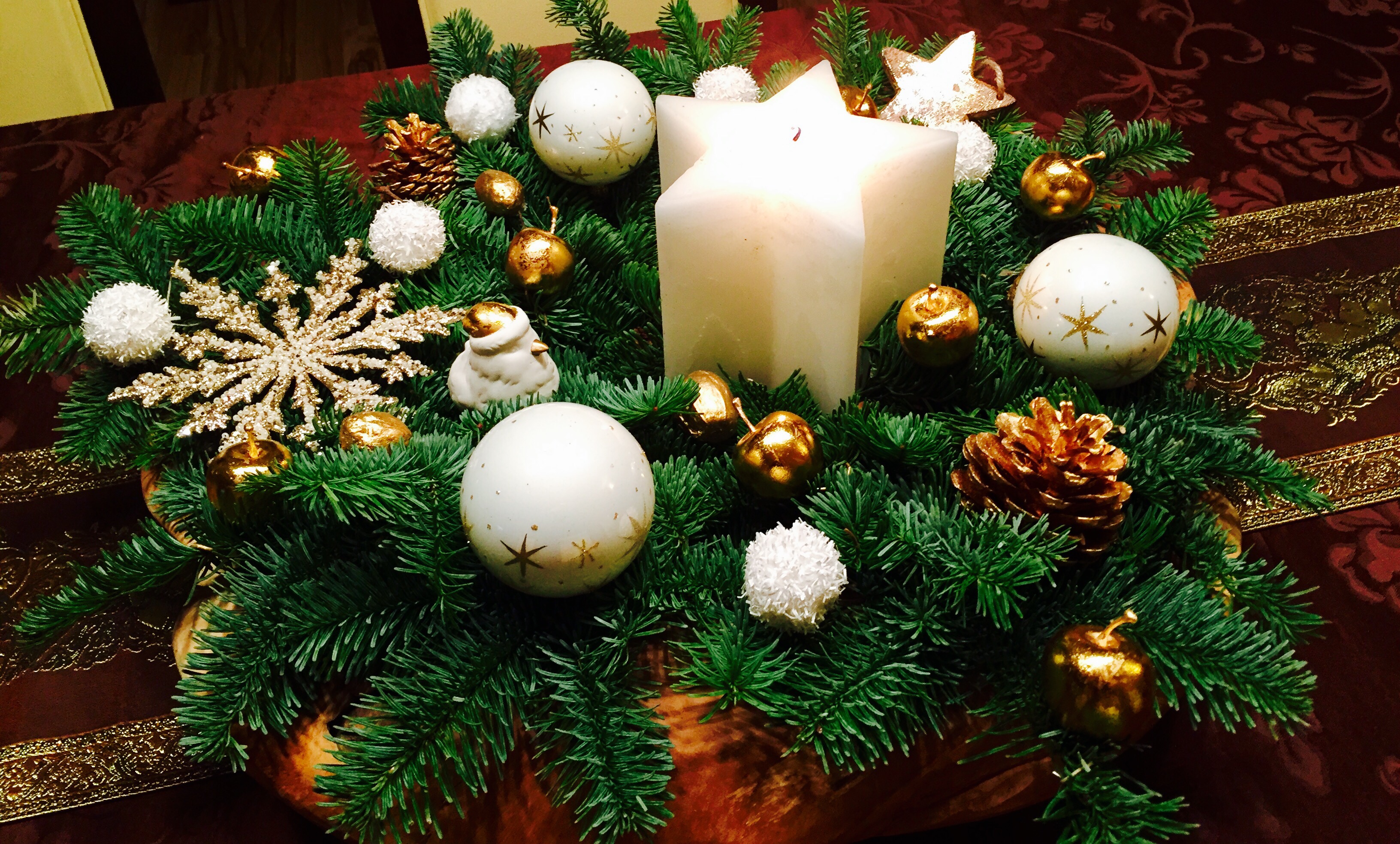 Heute möchte ich Euch meine Schale aus Olivenholz vorstellen. Ich habe mir die Schale vor drei Jahren bei Depot gekauft und ich liebe sie heute noch wie am ersten Tag. Die Schale steht bei uns auf dem Esstisch und wird je nach Anlass dekorativ in Szene gesetzt. Gestern habe ich Sie natürlich passend zum Advent weihnachtlich dekoriert. Ich habe mir eine schöne sternenförmige Kerze (diesmal bei Blume 2000) gekauft. Diese habe ich zusammen mit Tanne, Weihnachtskugeln, Zapfen und kleinen goldenen Äpfeln in der Schale zusammengestellt.