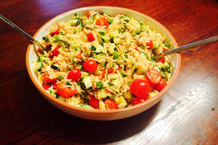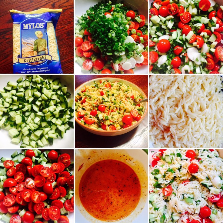 wir sind heute zum Grillen eingeladen und ich gebe natürlich meinen Beitrag dazu. Da wir vor kurzen von Freunden eine Karte aus Griechenland bekommen haben (ich liebe es ja Postkarten zu bekommen), habe ich mich inspirieren lassen …. Es gibt heute Salat mit griechischen Reisnundeln und Paprikacremé. Ihr braucht hierzu folgende Zutaten: