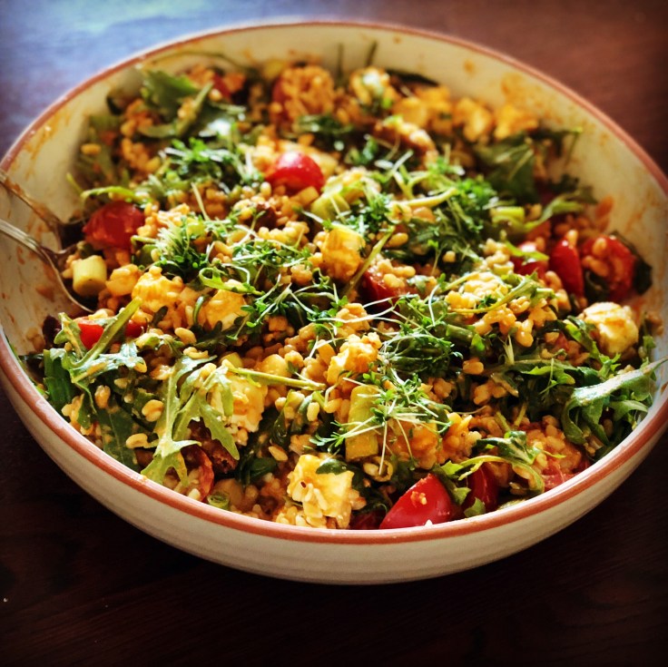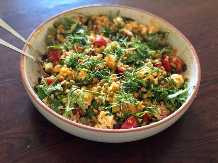 wer meinen Blog verfolgt, der weiß dass ich eine große Leidenschaft für Salate habe. Heute habe ich mal wieder einen neuen Salat ausprobiert und zwar mit Sonnenweizen. Kennt Ihr Sonnenweizen? Ich habe diesen heute zum ersten Mal ausprobiert. Man bereitet ihn wie Reis zu. Ihr braucht für den Salat für 4 – 6 Personen folgende Zutaten: