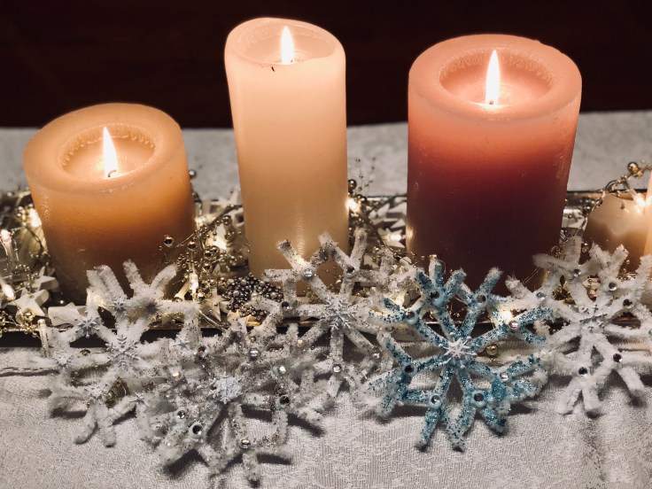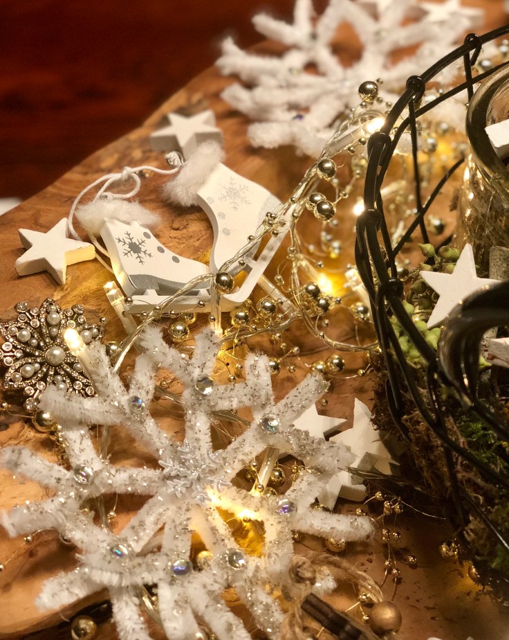Zusätzlich habe ich mir kleine weiße Holzschlittschuhe und Ski für die Deko gekauft.
