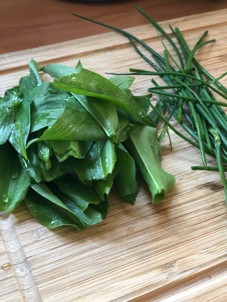 Ich habe das Glück und konnte für die Butter frischen Bärlauch in meinem Garten ernten.