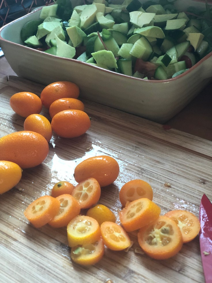 endlich ist mal wieder Zeit für einen neuen Beitrag. Wir sind gestern aus dem Urlaub zurückgekommen und aufgrund der ganzen Schlemmerei in Bella Italia ist es mal wieder Zeit für Salat. Wir haben in Florenz Urlaub gemacht und dort gibt es einen Markt neben den anderen. Die frischen Zutaten, Gemüse, Obst, Fleisch, Käse und alles was das Herz begehrt haben mich inspiriert und mir Lust darauf gemacht mal wieder was Neues auszuprobieren. Da ich etwas Pep im Salat haben wollte, habe ich mich für Kumquats entschieden. Diese kleinen Zitrusfrüchte sind sehr praktisch, weil man sie mit Schale verzehren kann.