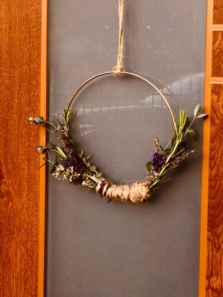 Mit der selben Schnur habe ich eine Anhängeschlaufe an der oberen Mitte des Kranzes befestigt. Und fertig ist mein Sommerkranz mit einen besonderen Duftaroma.