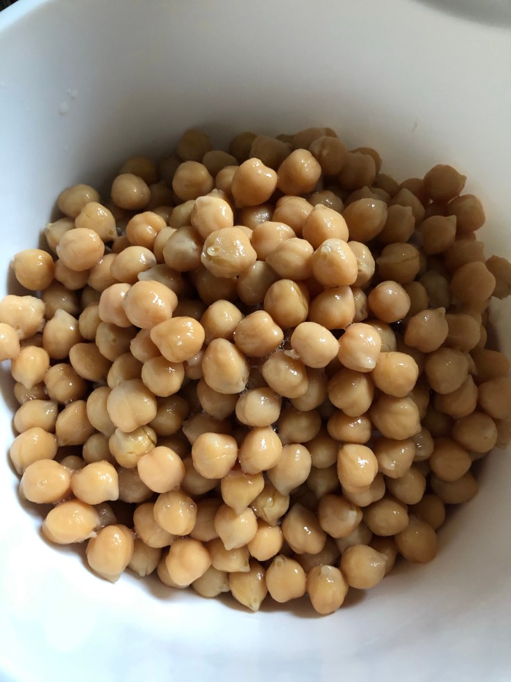 Zuerst habe ich die Kichererbsen gewaschen und den Backofen auf 200 Grad Ober- und Unterhitze vorgeheizt.