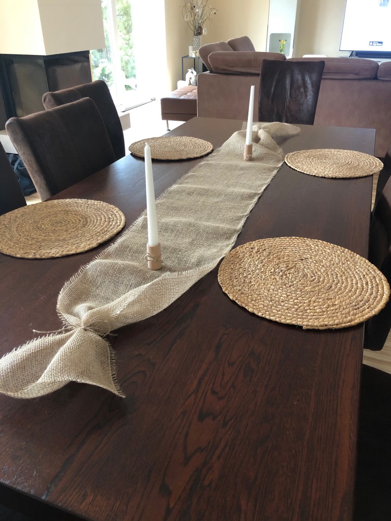 Und schon steht meine Grundlage für die Tischdeko. Dazu kommen meine runden Platzset´s aus Naturmaterial und meine selbstgebauten Holzkerzenständer aus Bauklötzen (hierzu findet Ihr einen Beitrag auf meinen Blog).
