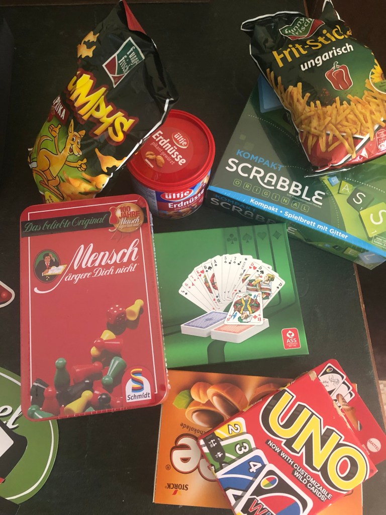 - Spiele (Uno, Kartenspiel, Scrabble, Mensch Ärgere Dich nicht)