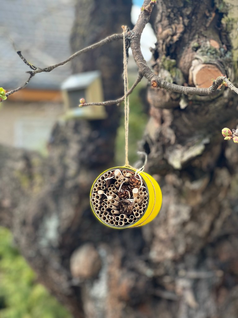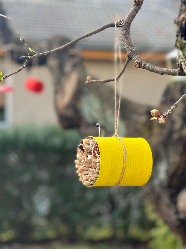 Heute Morgen habe ich die Insektenhotels bei uns in den Garten gehangen.