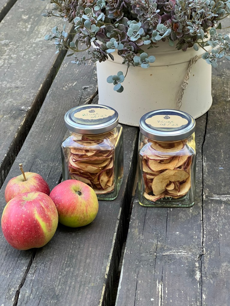 Auch diese habe ich die Äpfel haltbar gemacht. Zum einen habe ich wieder mein Dörrgerät verwendet. Ich habe Apfelringe gemacht.