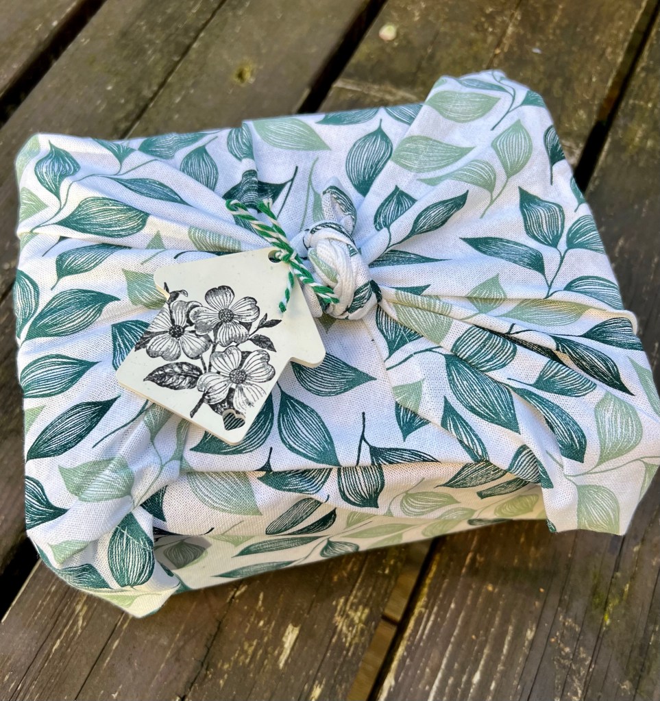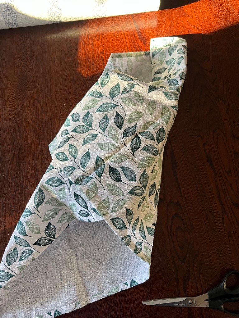 Das Geschirrtuch ausbreiten und das Geschenk diagonal drauf stellen.