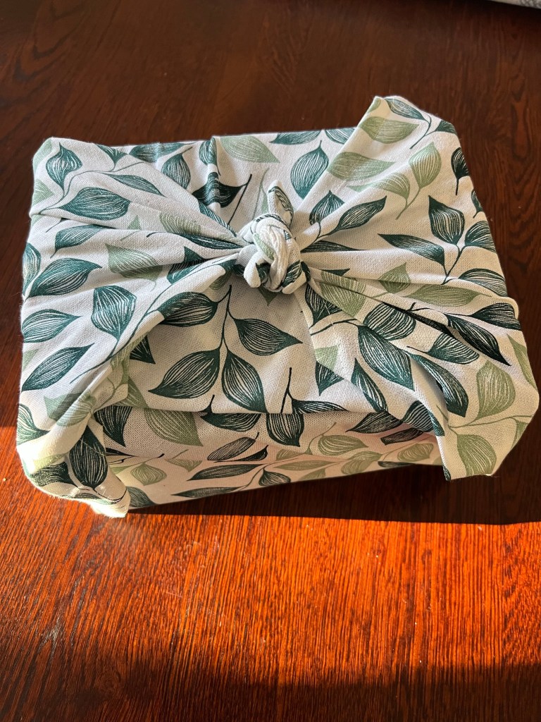 Dann das Tuch überall noch ein bisschen fest stecken und fertig ist die Verpackung.
