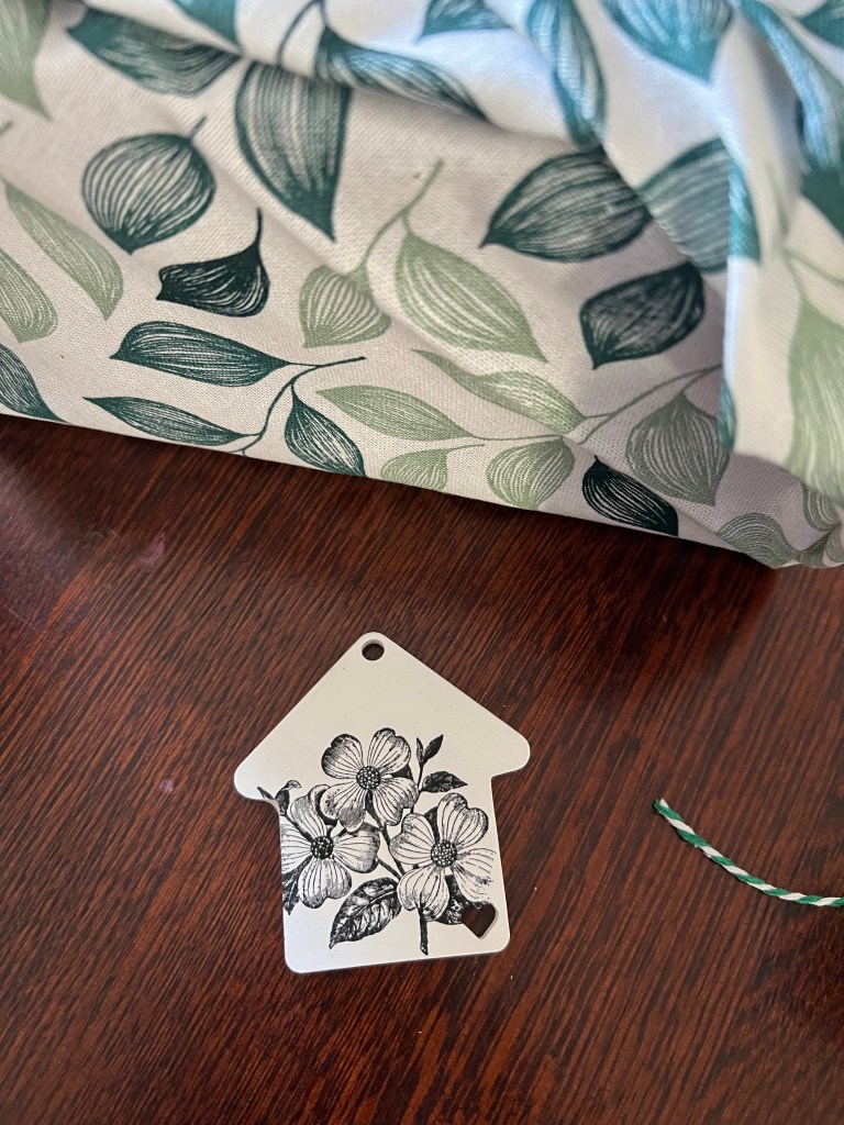 Ich habe noch einen selbst gemachten Anhänger aus Raysin mit Stempel an das Geschenk gebunden.
