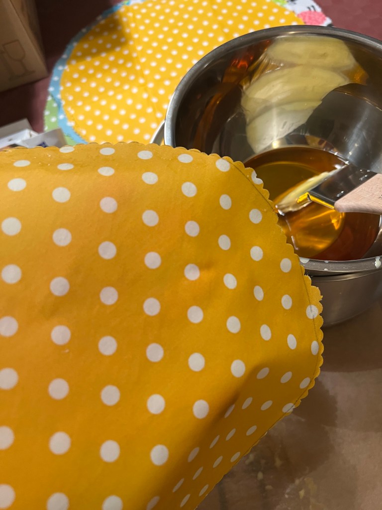 Und fertig ist das Bienenwachstuch! Wenn es mal nicht mehr so schön ist, kann man es einfach mit Backpapier dazwischen wieder aufbügeln.