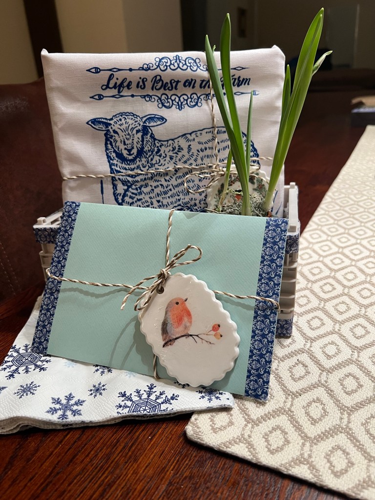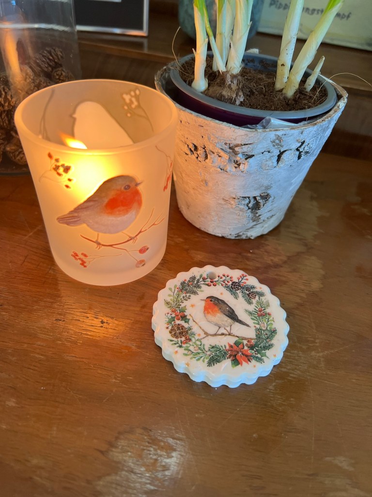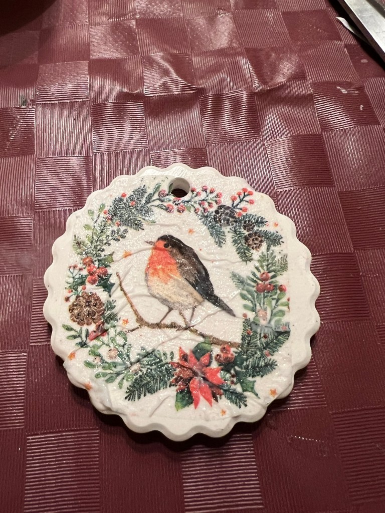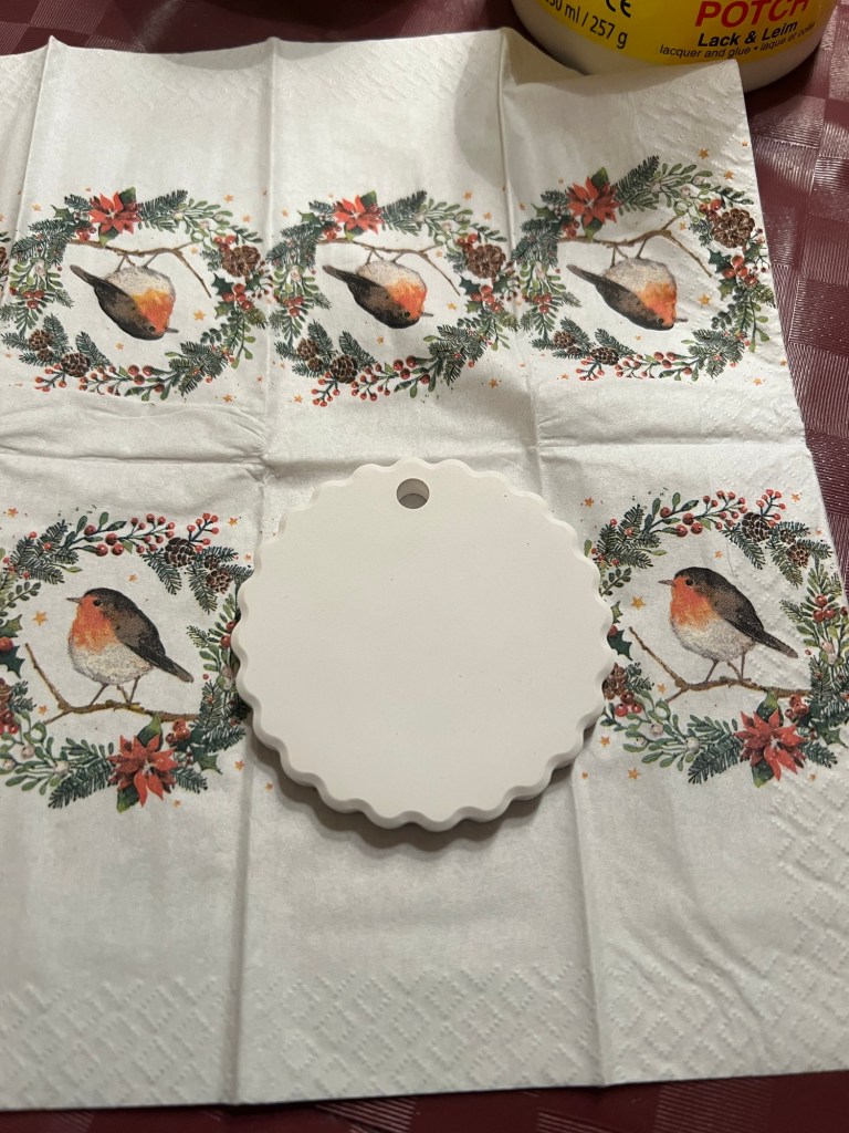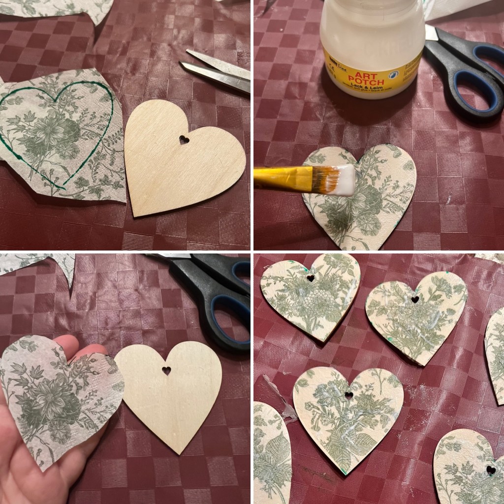 Die Geschenkanhänger aus Holz und Raysin habe ich mit Serviettentechnik und Tripple Gloss Lack verschönert.