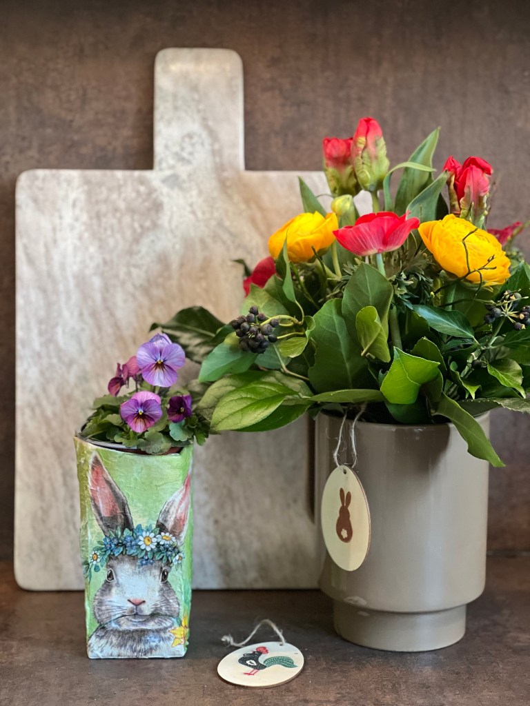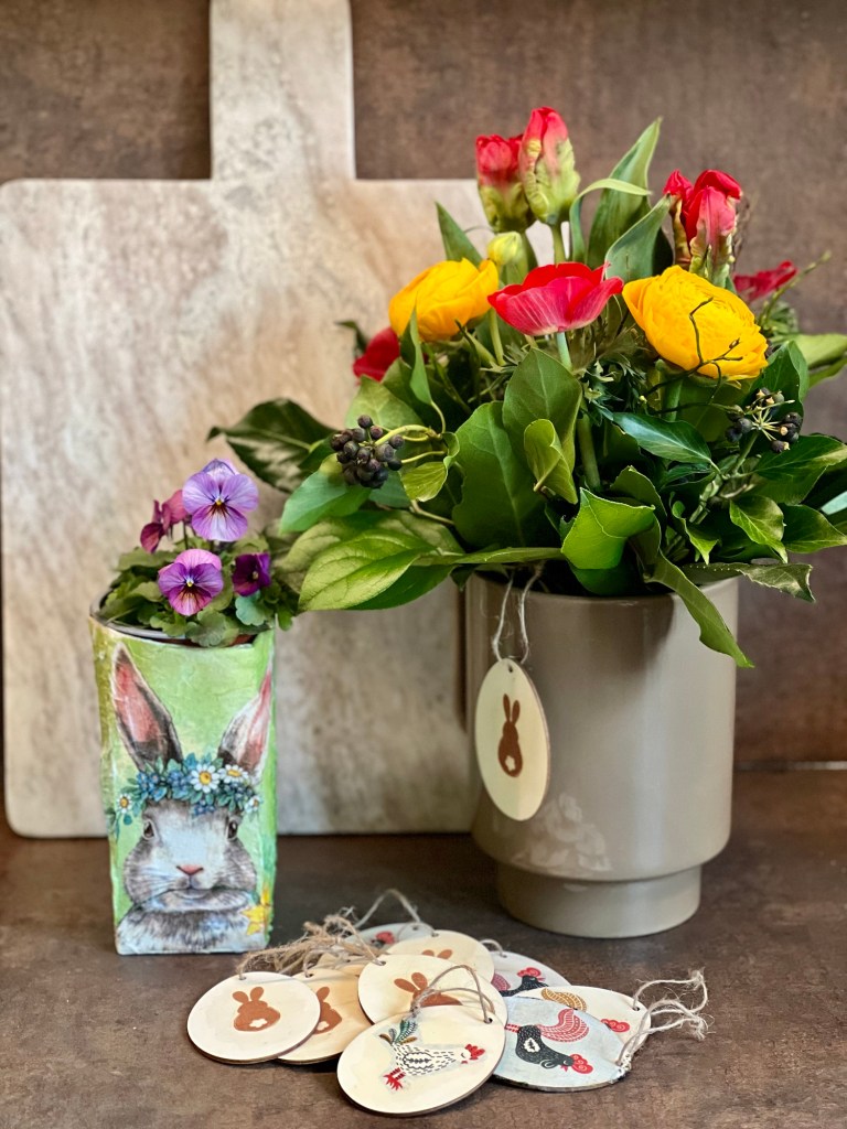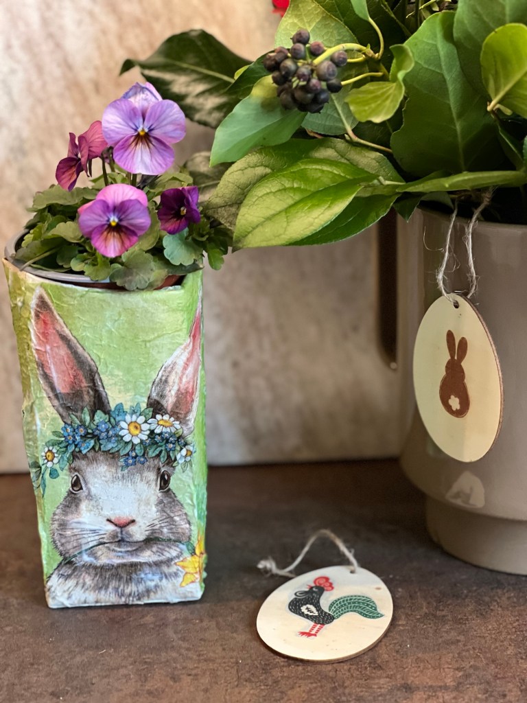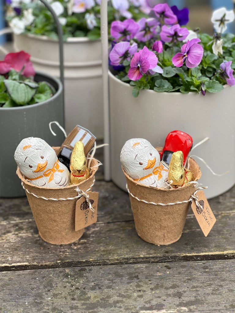 Diese Töpfe habe ich ebenfalls mit Holzwolle gefüllt und ein Schokokücken und Osterhasen sowie ein Matchbox Auto hineingelegt. Dann habe ich noch ein Band mit einen Ostergruß drum herum gebunden und fertig ist eine schnelle Osternest Variante. Die drei Jungs haben sich auf jeden Fall gefreut.