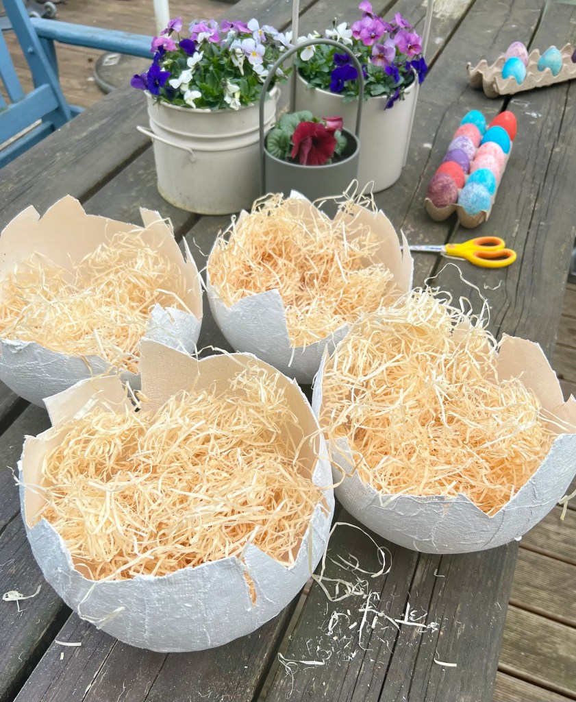 Fertig sind die Osternester. Das ist ein bisschen aufwendiger, aber ich finde es lohnt sich.