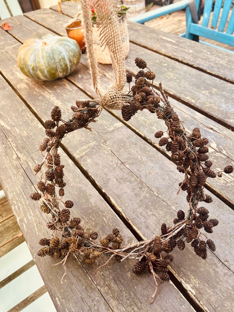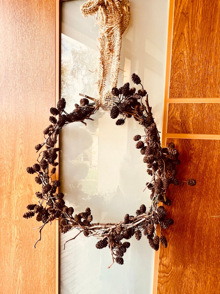 Ich habe zwei Kerzen mit dem Band zusammen gebunden und eine Trockenblume dazu gesteckt.