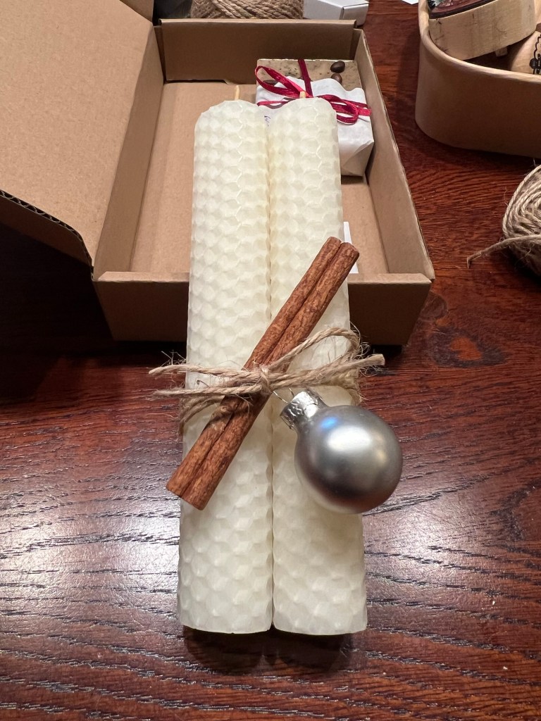 Deshalb kam ich auf die Idee, doch solche Kerzen mit zu verschenken.