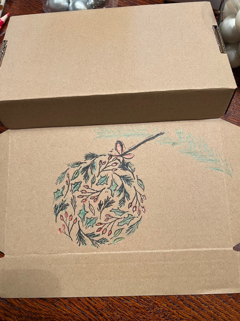 Für die kleinen Geschenke muss natürlich auch eine schöne Verpackung her. Dafür habe ich mir diesmal einfach kleine Pappschachteln besorgt. Die habe ich bestempelt und mit Buntstiften ausgemalt.