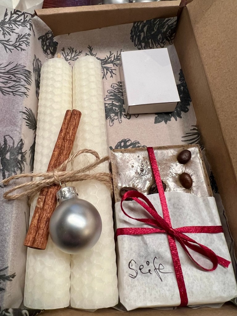 Zu den Kerzen und der Seife gibt es noch eine kleine Packung mit Streichhölzern.
