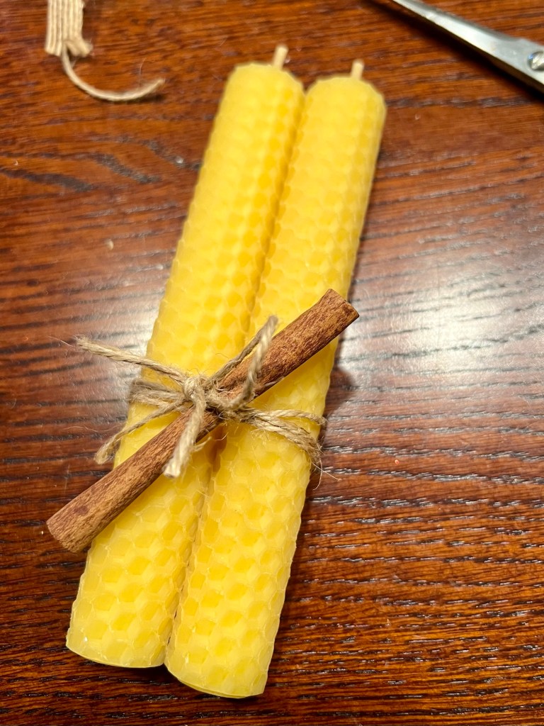 Ich habe eine Stange Zimt dran gebunden und fertig ist eine kleine süße Geschenkidee oder ein Mitbringsel. Ich finde ja die Optik so toll und dazu dieser schöne Geruch.