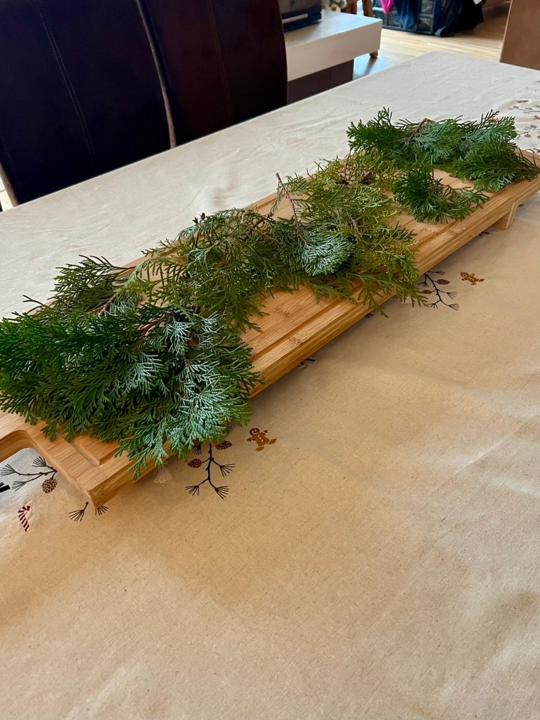 Auf dem Brett habe ich etwas Tannengrün gelegt.