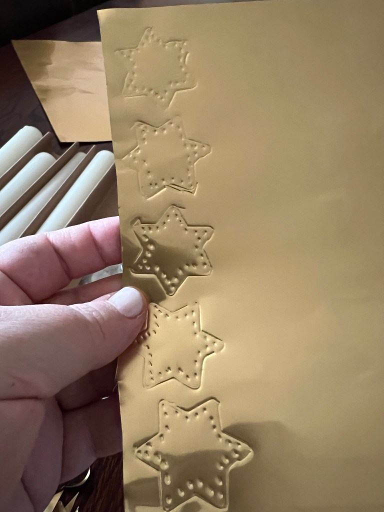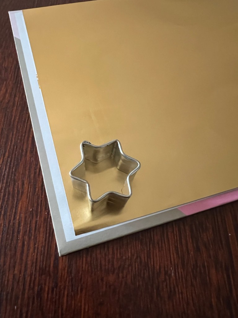 Dann habe ich ein paar Sterne aus goldener Prägefolie ausgeschnitten.