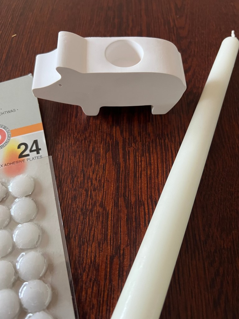 Diesmal habe ich wieder mit Raysin gearbeitet. Ich habe nach Packungsbeilage eine Silikonform – ein Schwein als Kerzenhalter mit Raysin befüllt und austrocknen lassen.