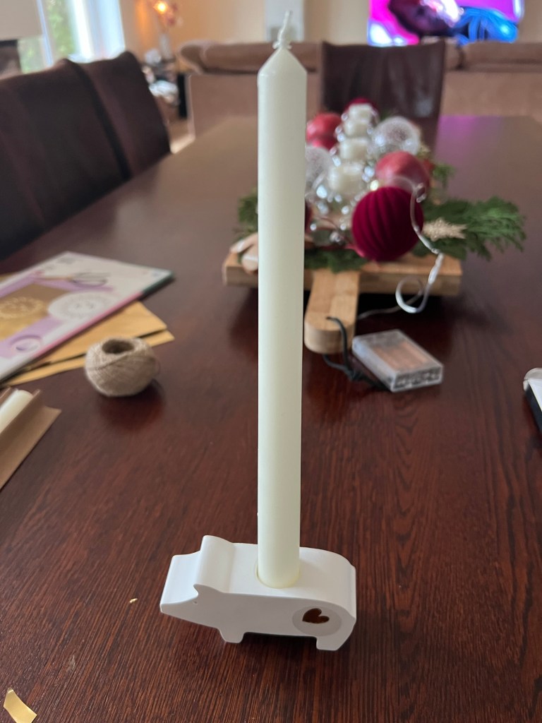Die Kerze habe ich mit einem Wachsplättchen in dem Kerzenhalter befestigt.