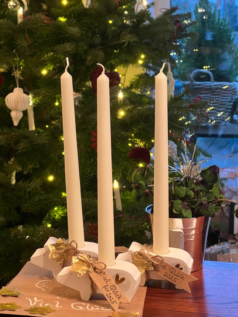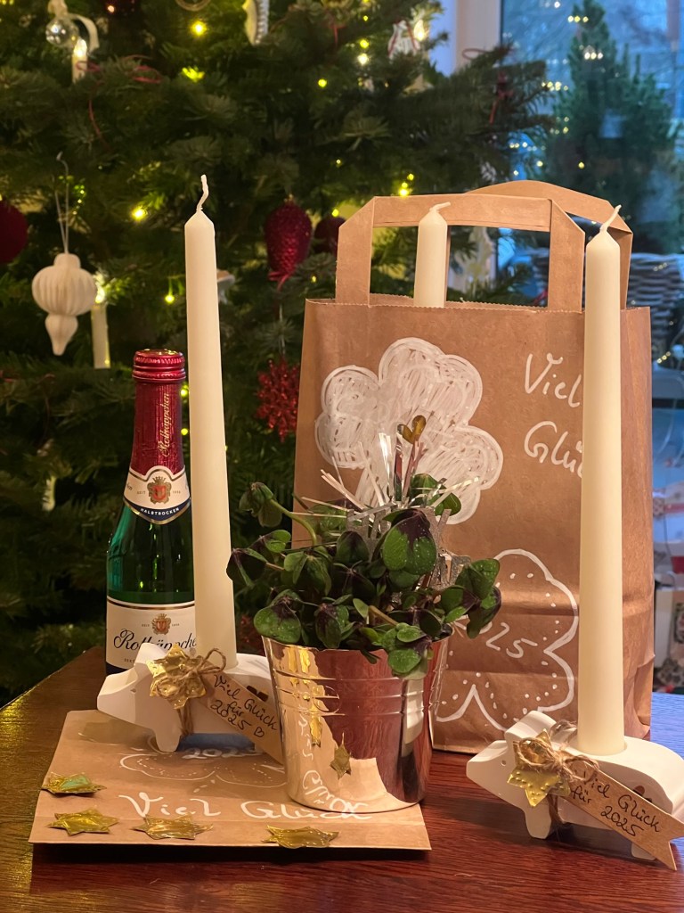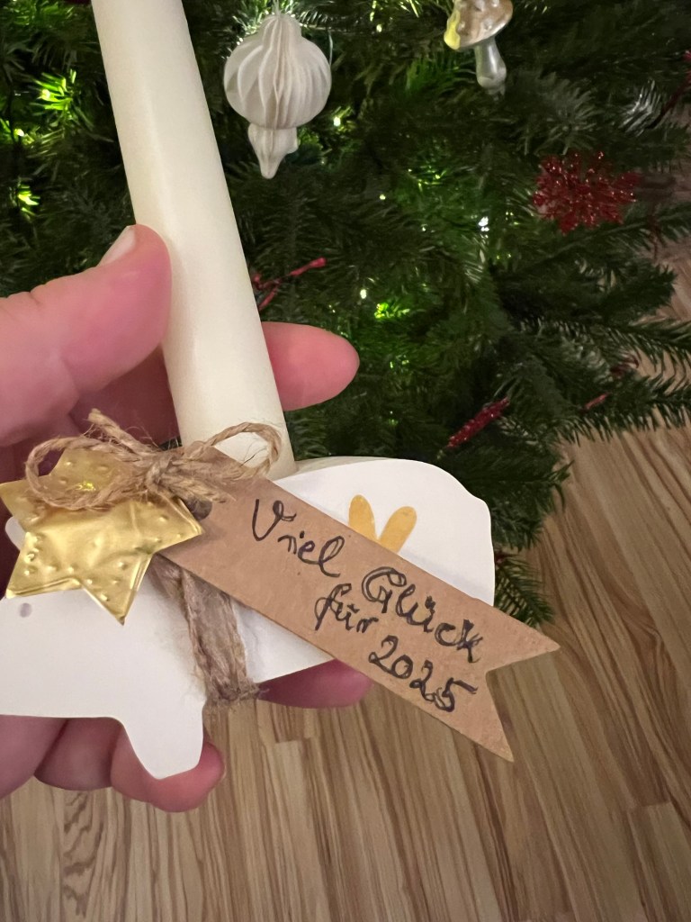 Dann habe ich noch jeweils ein Schildchen mit „viel Glück für 2025“ beschrieben.