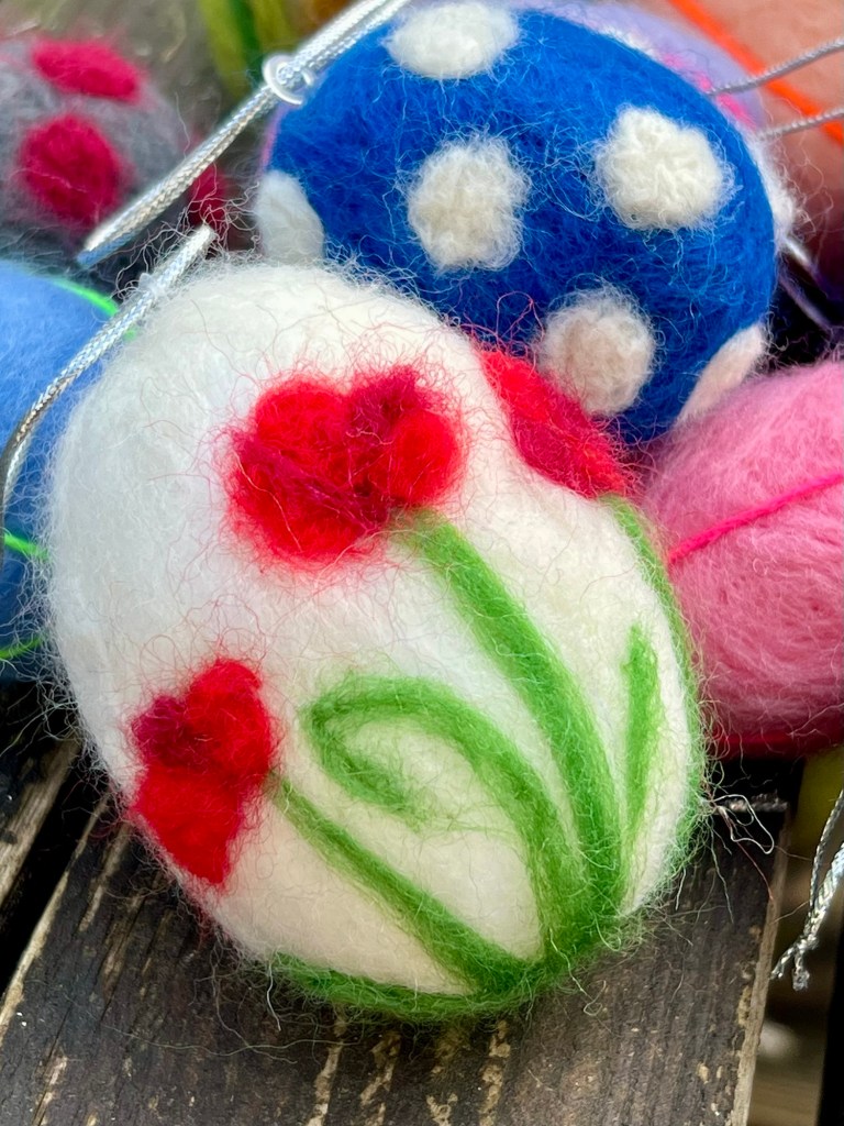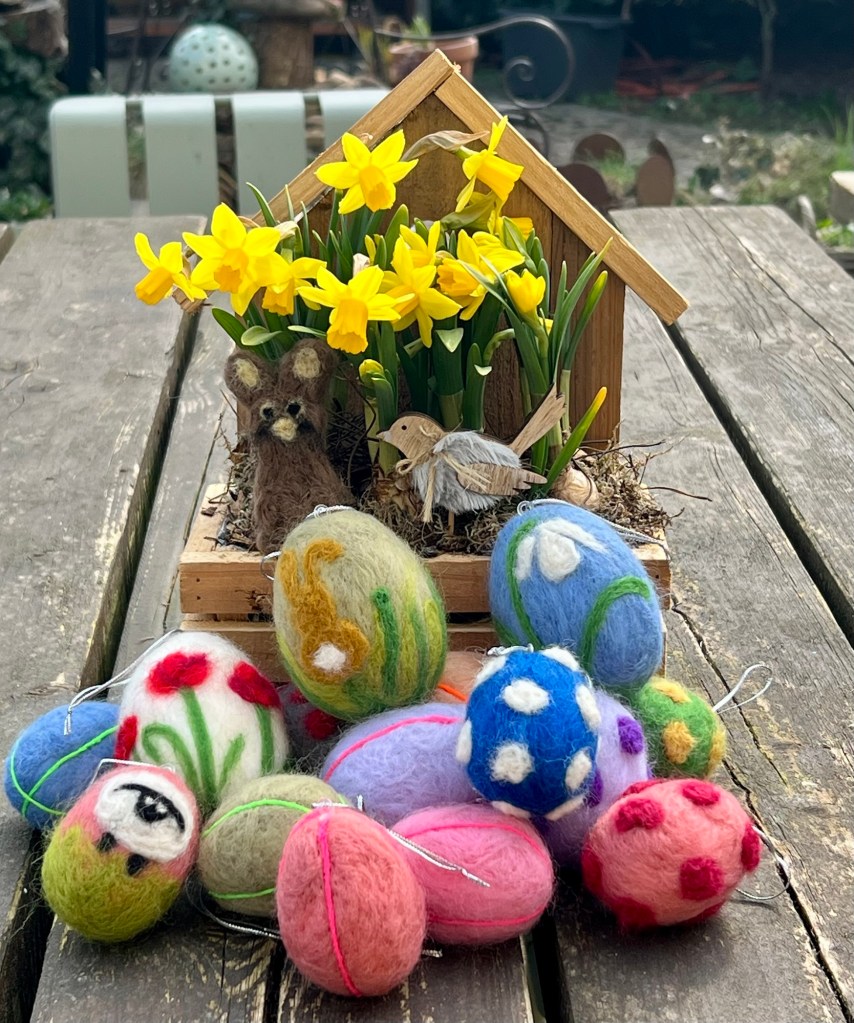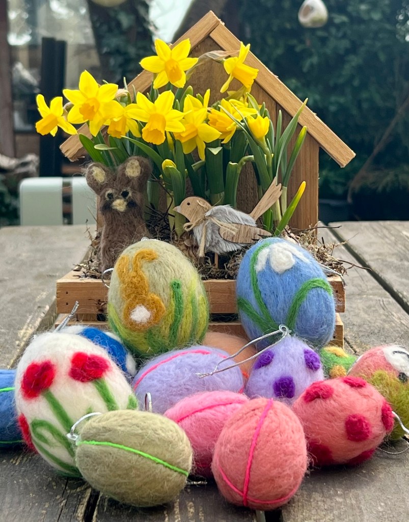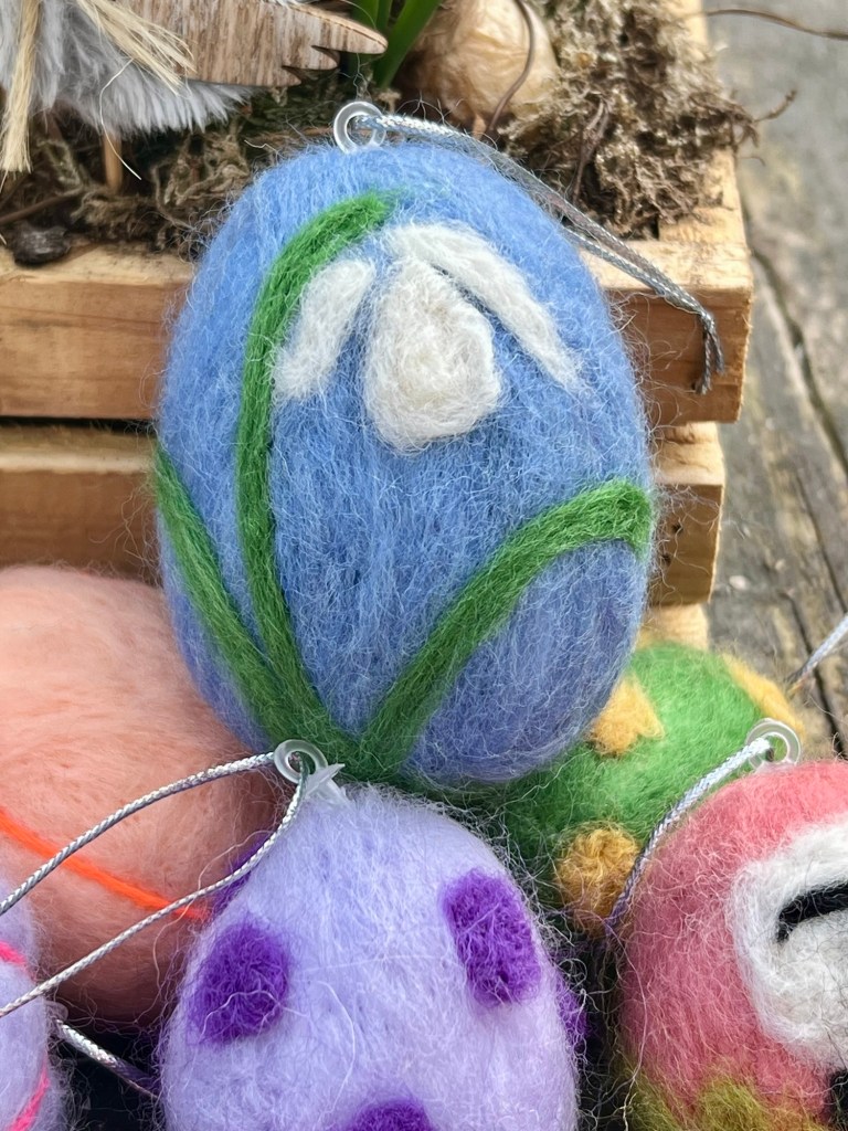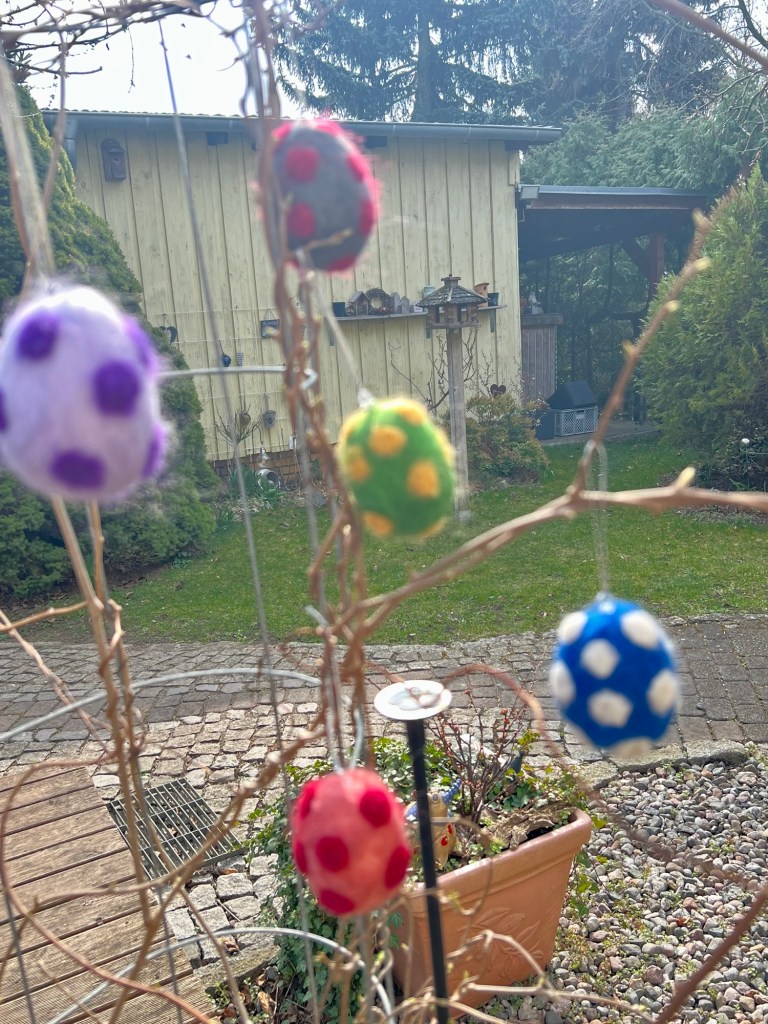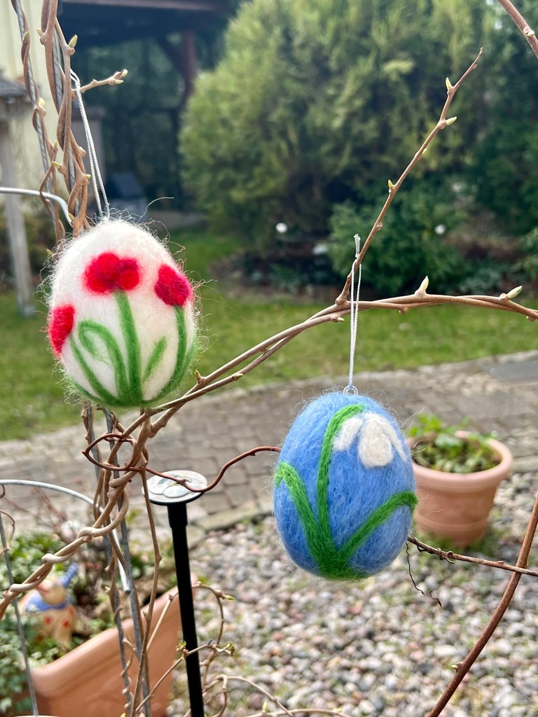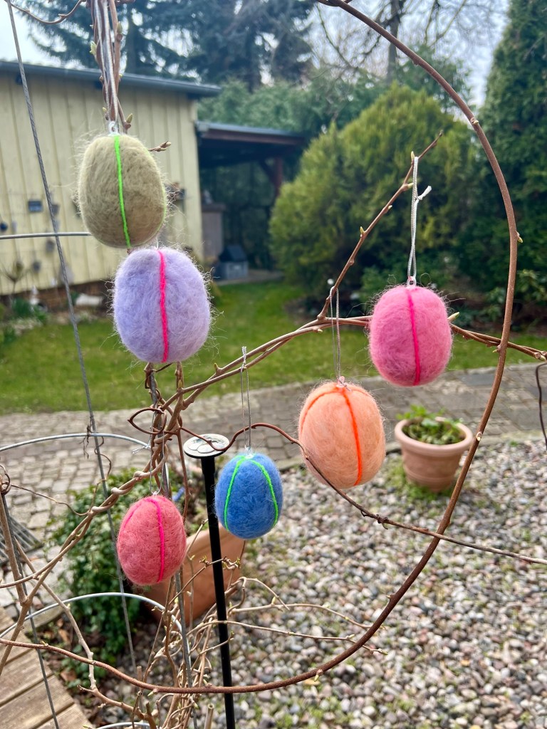 wer meinen Blog folgt, der weiß dass ich mich in letzter Zeit mit Nadelfilzen beschäftige. Diese Technik wirkt sehr beruhigend und entschleunigend. Jetzt passend zu Ostern habe ich Ostereier gefilzt.