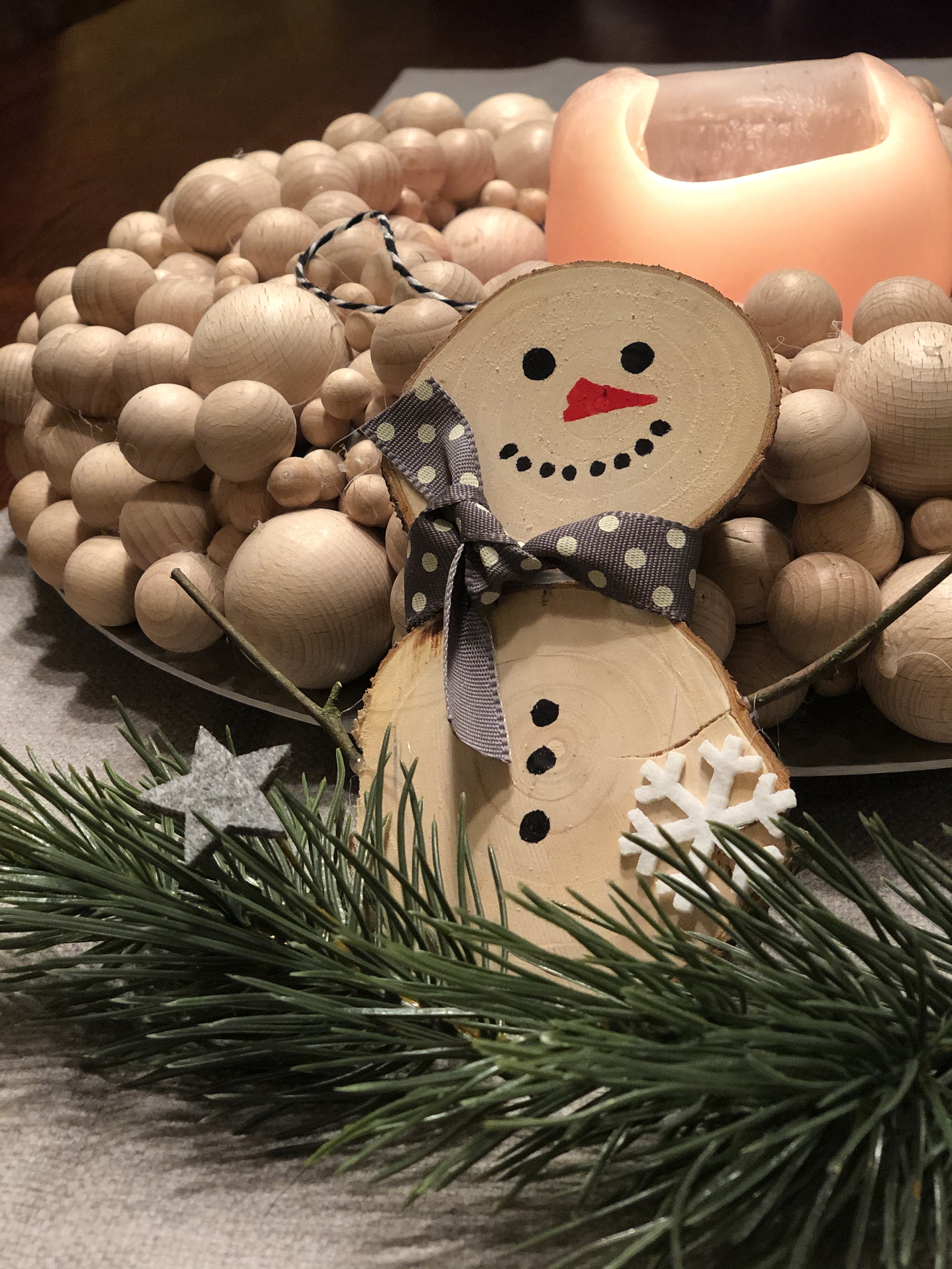 Mein lieber Schwiegervater hat für mich ein paar Holzscheiben gesägt. Ich habe eine kleine Holztischplatte bei Amazon bestellt.