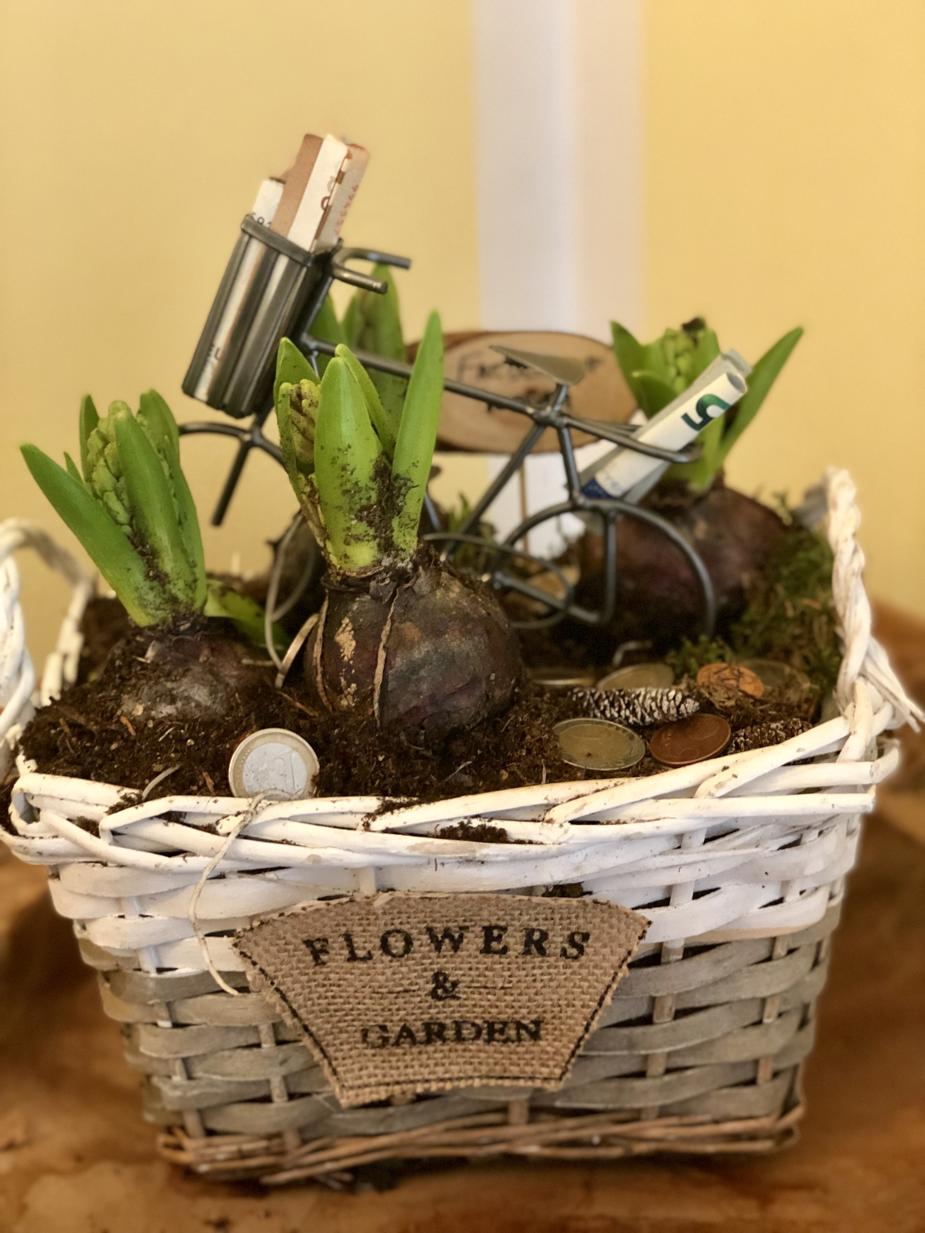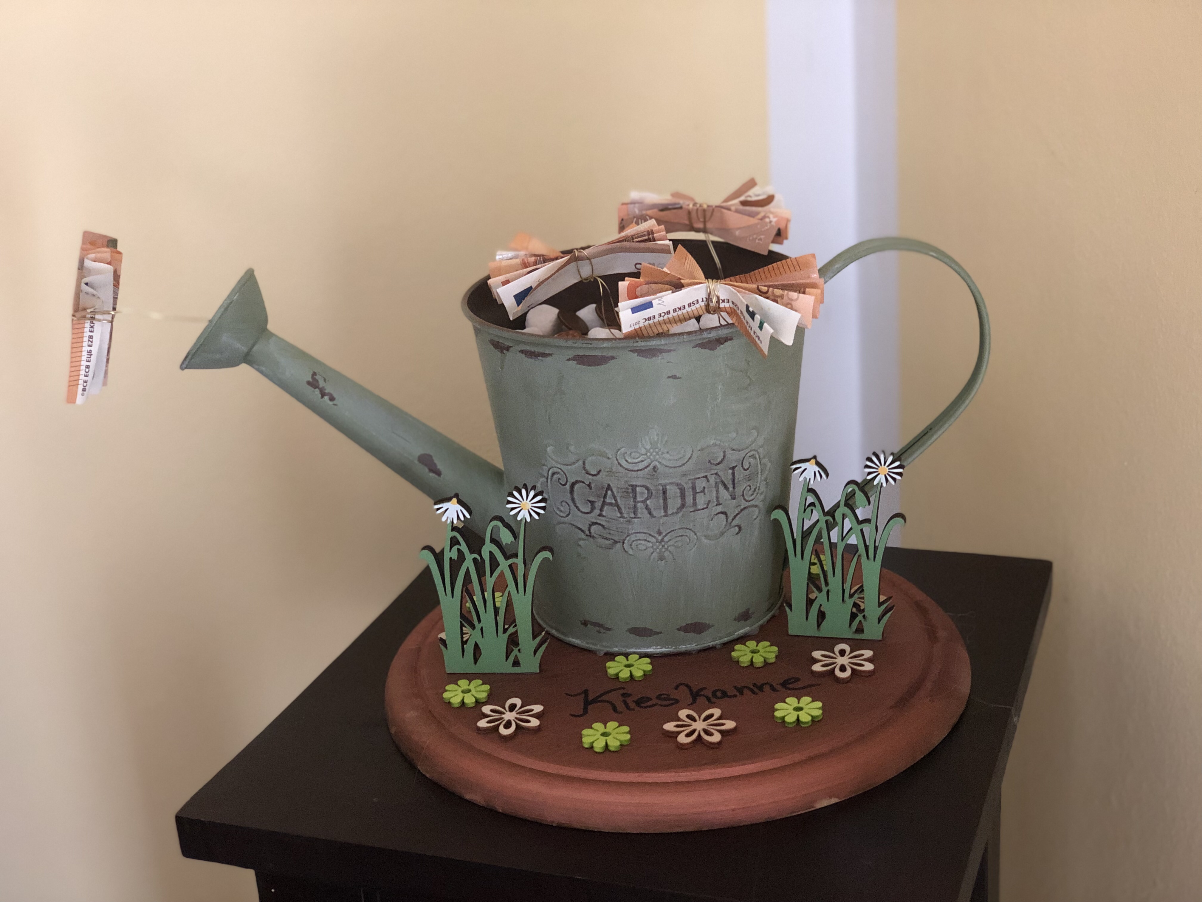 heute habe ich mal wieder einen kleinen Beitrag zum Thema Geldgeschenk. Meine Tante hatte Geburtstag und hat sich Geld gewünscht, weil sie Ihr Wohnzimmer verschönern möchte. Da ich ja ungern, einfach nur Geld in einen Umschlag stecke, habe ich mal wieder auf Pinterest herumgestöbert und nach Ideen gesucht. Und da habe ich die schöne Geldblume entdeckt. Ich habe folgende Sachen für die Geldblume gebraucht:
