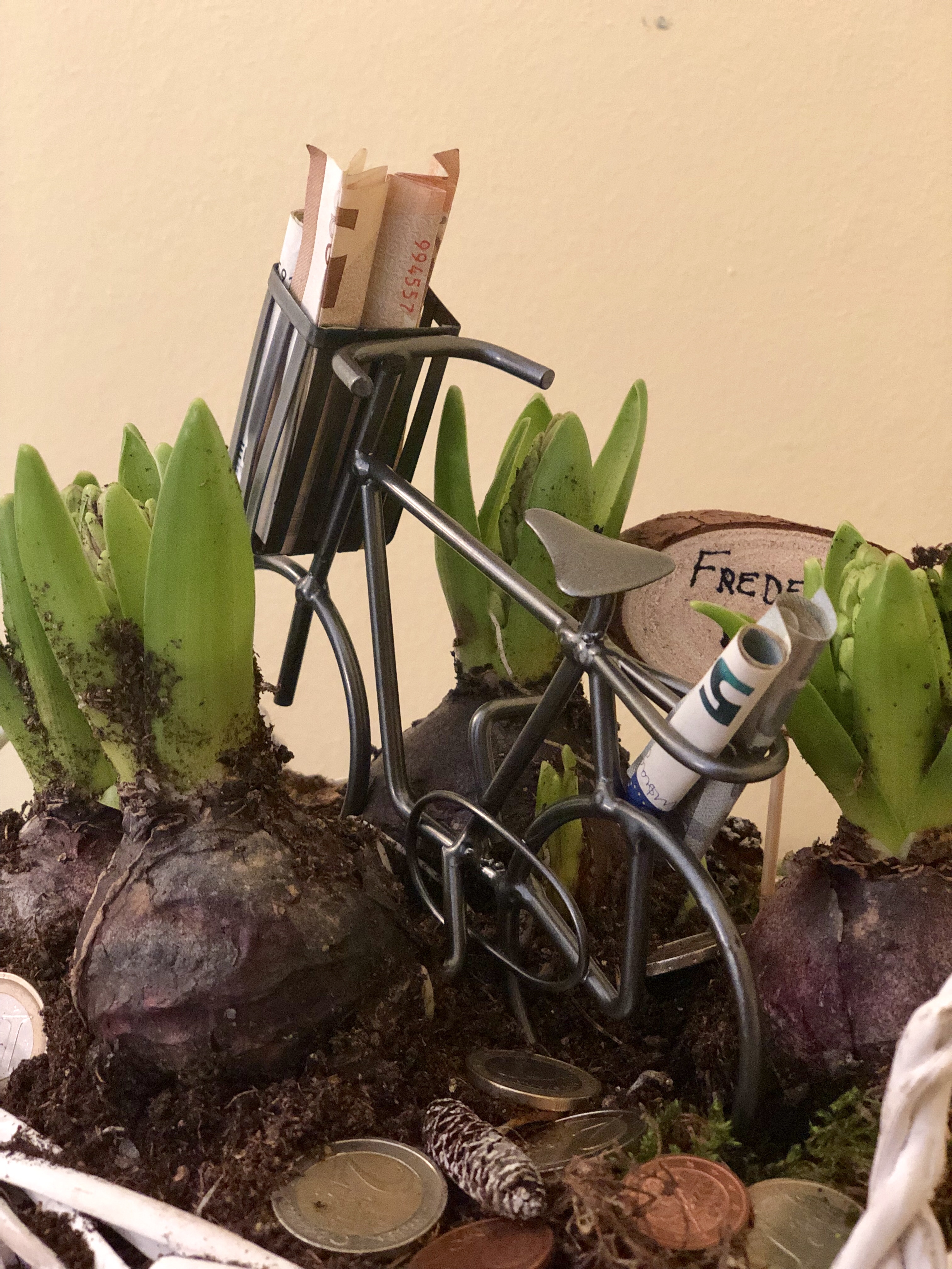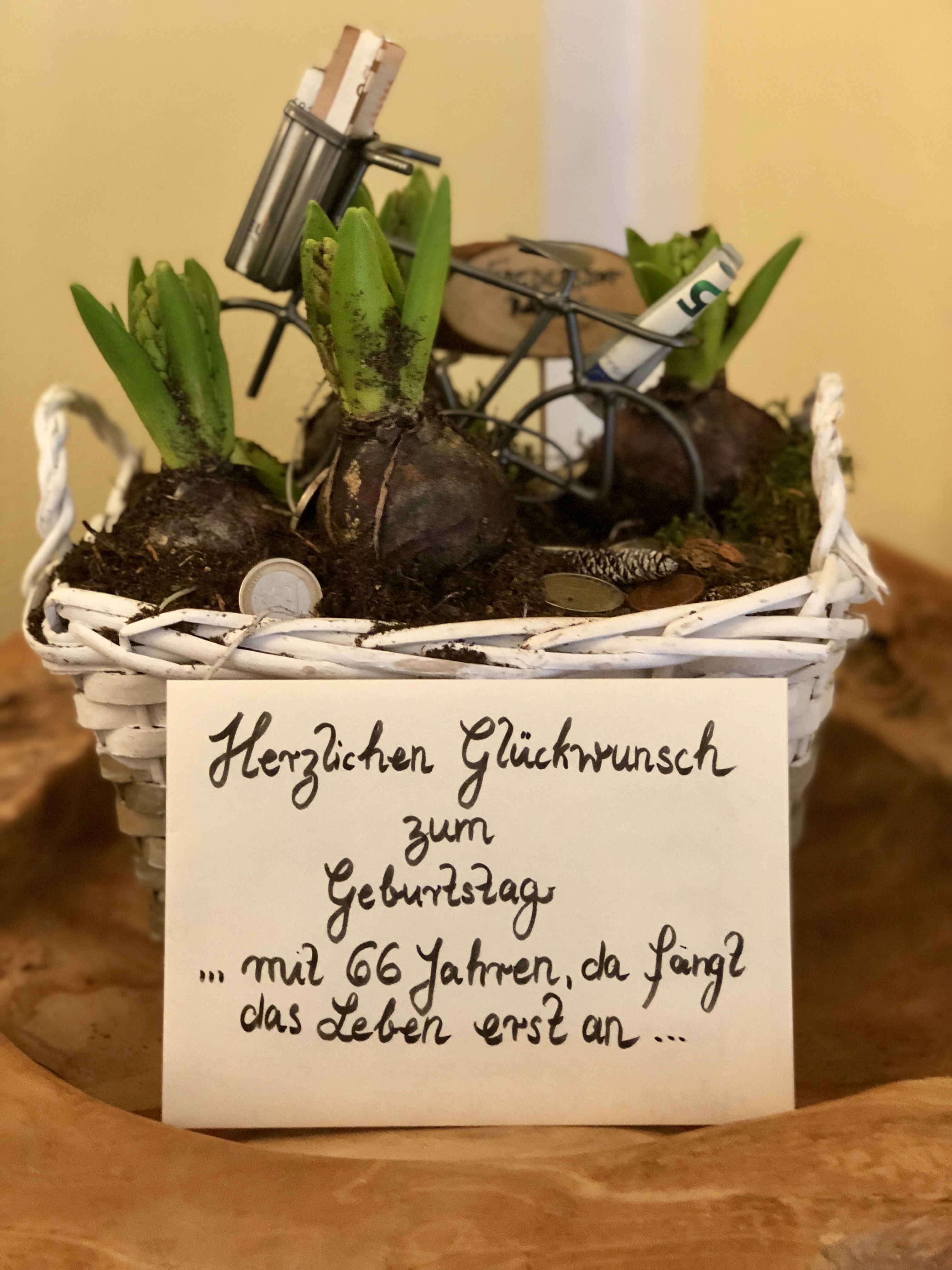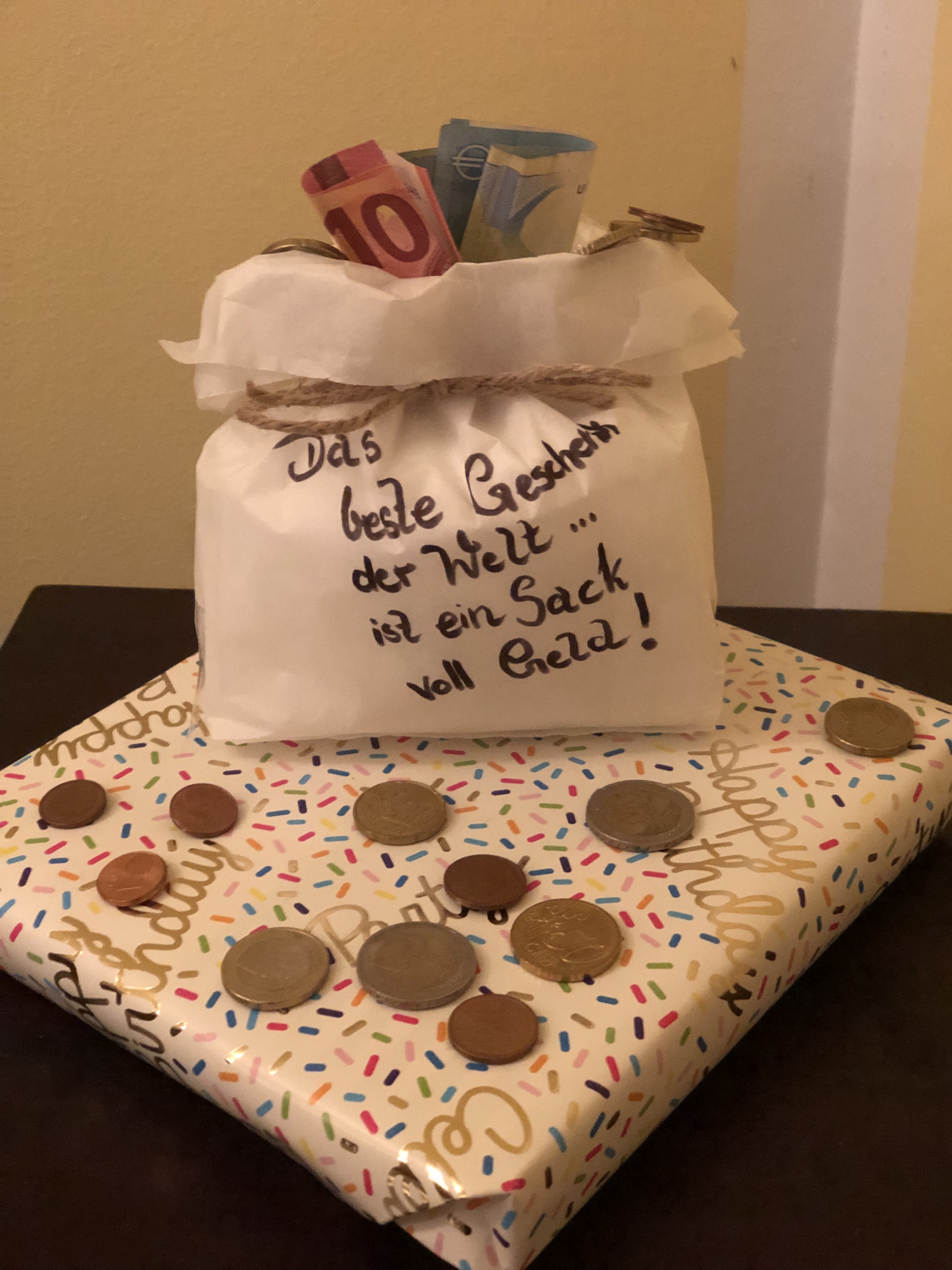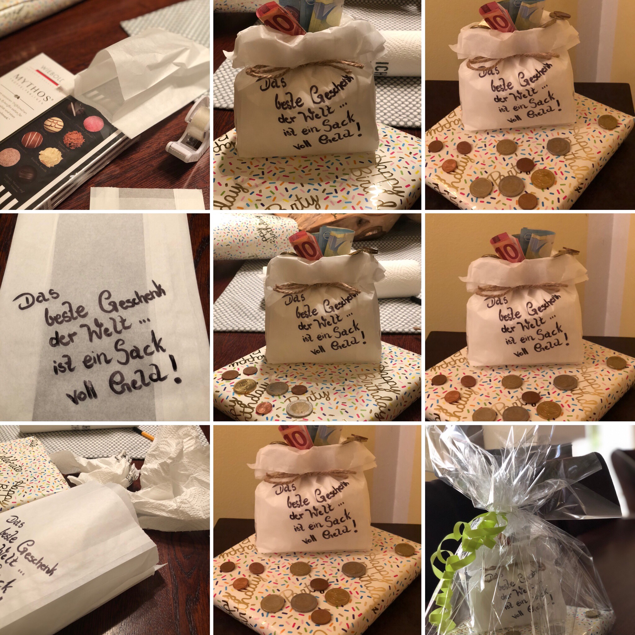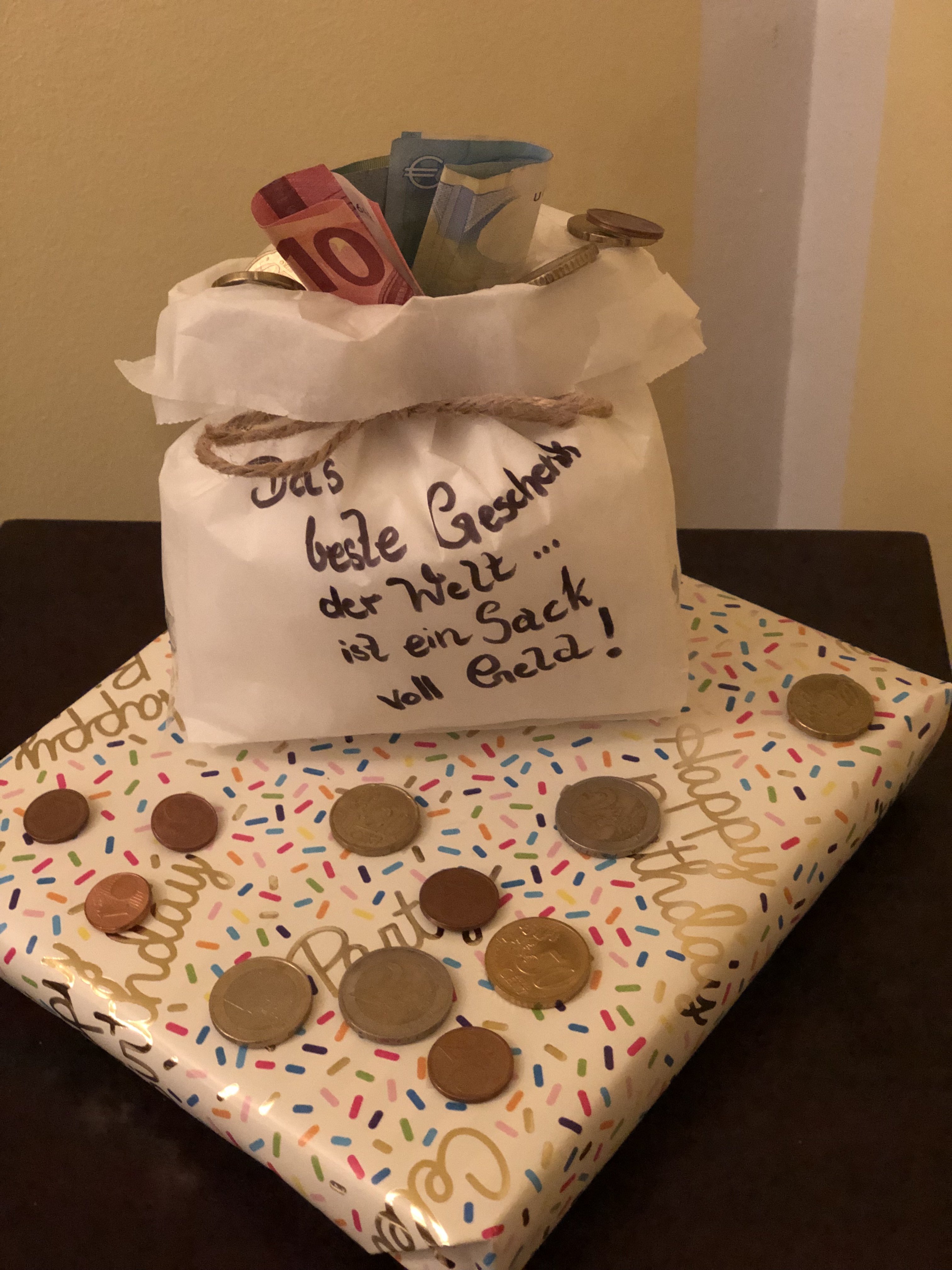 Anbei habe ich noch eine kleine Idee für alle, die nicht so viel falten wollen einfach einen Geldschein zusammen rollen und als Kerze aufkleben.