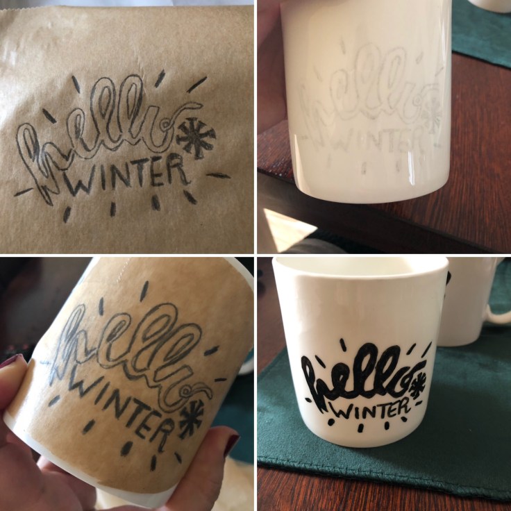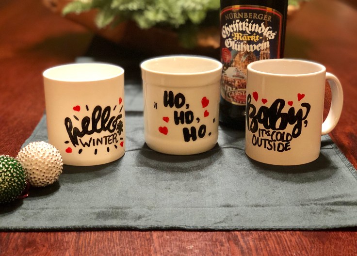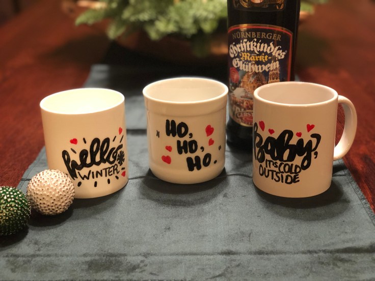 Die Tassen für den Glühwein sind bereit – Handlettering mit Abpaustrick