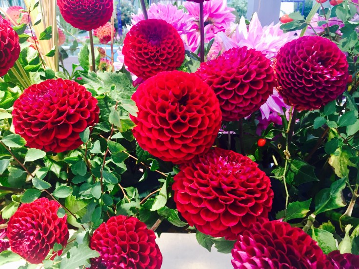 Auch die Blumenhalle ist was ganz besonderes. Hier finden wöchentlich wechsenlnde Ausstellungen statt. Wir haben heute schon ein Teil der Dahlienaustellung gesehen. Ich habe nicht gewusst, was es für eine Vielfalt von Farben und Formen bei den Dahlien gibt.