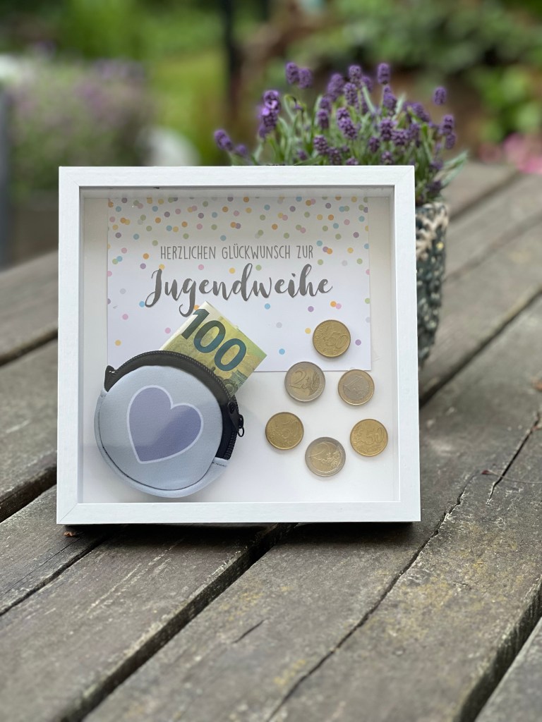 dieses Wochenende standen mal wieder mehrere Feierlichkeiten an. Unter anderen eine Jugendweihe. Diesmal war meine Zeit für‘s Basteln leider eng bemessen, aber trotzdem wollte ich nicht nur ein Briefumschlag mit Geld übergeben.