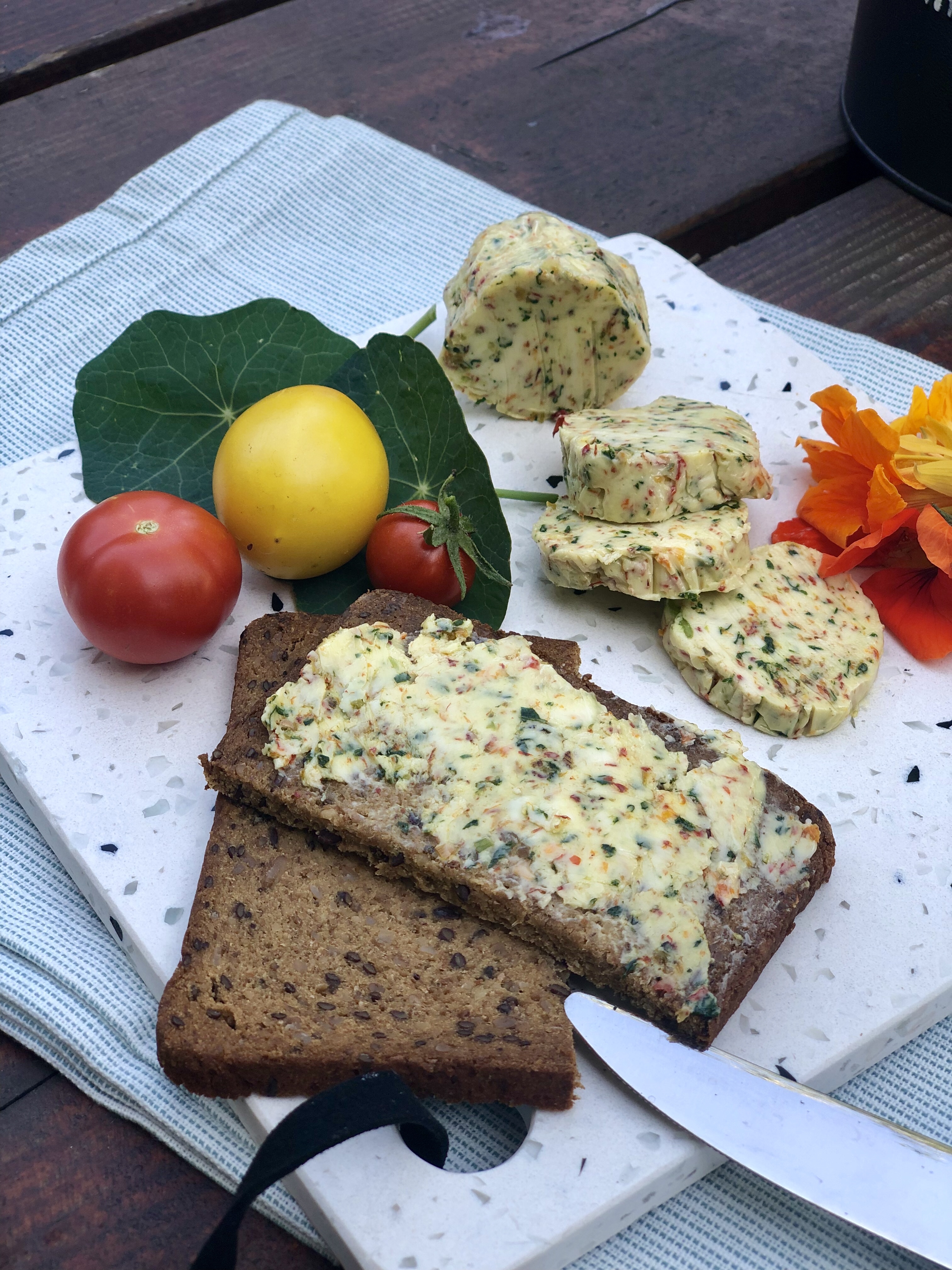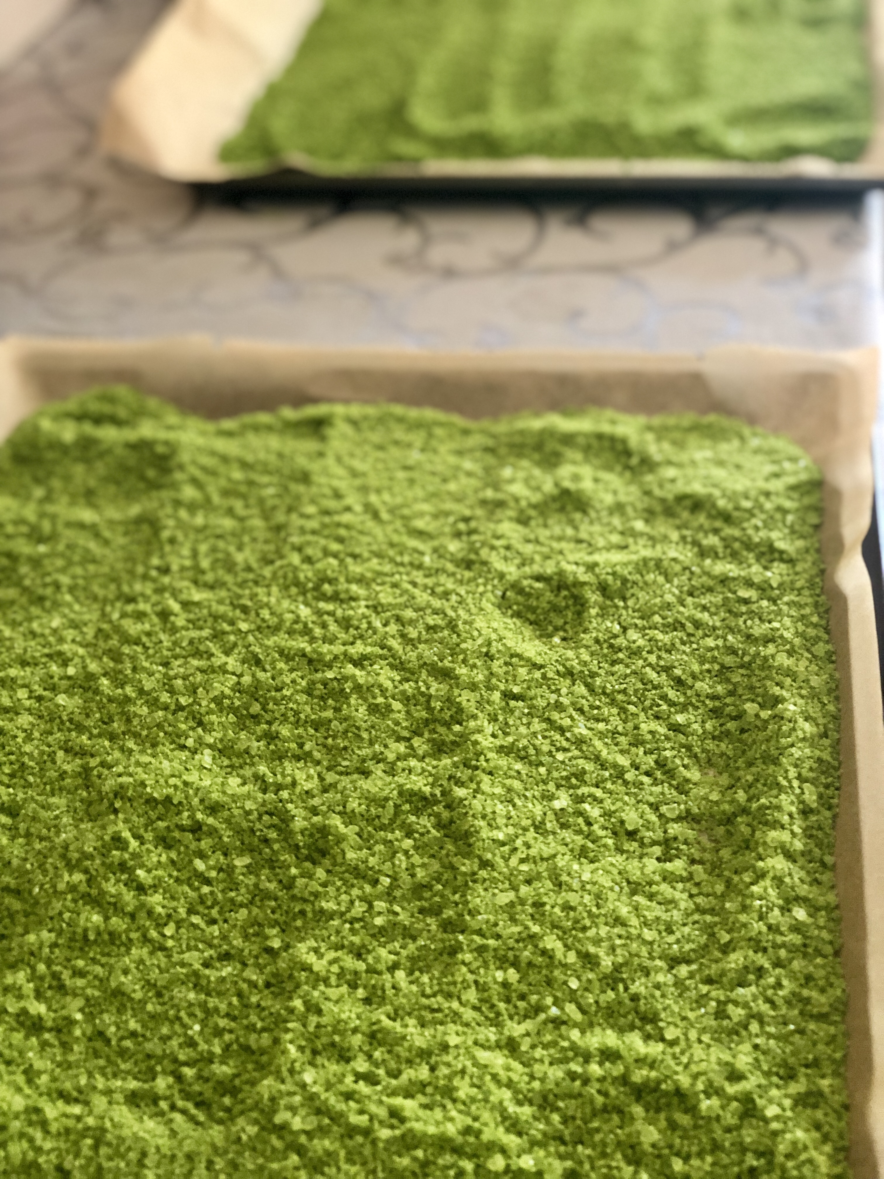 Zuerst habe ich die Blätter der Kresse gewaschen und getrocknet. Die Blüten habe ich abgeschüttelt und auf ein weißes Küchenpapier gelegt, damit alle kleinen Tierchen, die sich eventuell in den Blüten versteckt haben, herauskrabbeln.