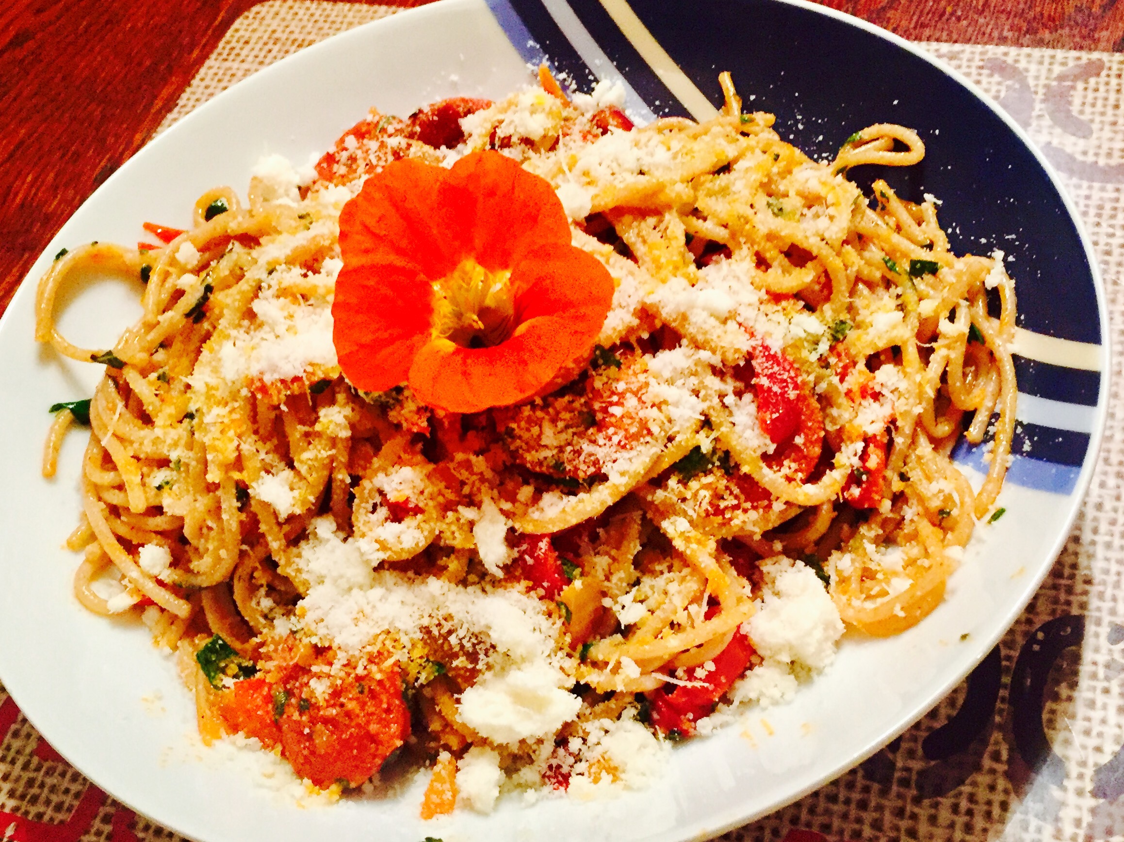 heute Abend gibt es mal die „bösen“ Kohlenhydrate, die so lecker sind! Aber so ab und an muss das auch mal sein …. Ich habe uns heute Dinkelspaghetti mit Chorizo, Tomatenpaprika und Kapuzinerkresse zubereitet. Ihr benötigt hierfür folgende Zutaten (2 Personen):