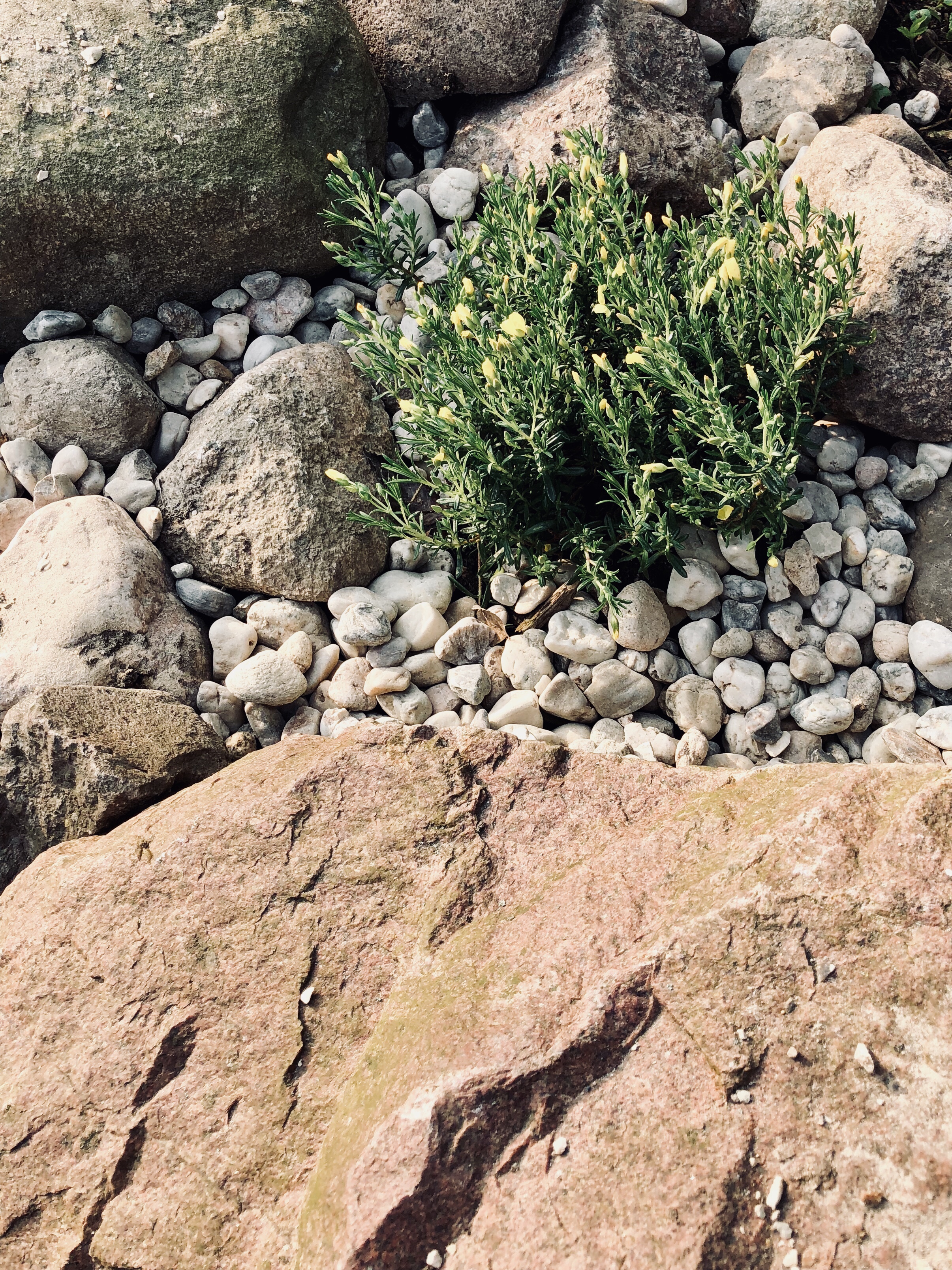 ich habe uns im Garten mediterranes Flair gezaubert. Ich habe gestern und heute im Angesicht meines Schweißes ein Steingartenbeet in unserem hinteren Teil des Gartens gestaltet. Den hinteren Teil des Gartens wollen wir generell neu gestalten und mit dem Steingartenbeet haben wir nun angefangen. Die Pflanzen die noch im Beet waren, zum Beispiel meine zwei Kletterhortensien habe ich in das Beet mit integriert. Bei den großen Steinen hat mir meine bessere Hälfte mit seiner Muskelkraft geholfen. Zuerst haben wir die großen Steine an ihren Platz gelegt und dann habe ich die Pflanzen Thymian, Rosmarin, Lavendel, Fette Henne und ein paar andere Pflanzen eingepflanzt. Dann habe ich die kleineren Steine im Beet verteilt. Danach habe ich auf die noch freien Flächen Kieselsteine gelegt. Hier muss ich allerdings noch welche nachkaufen, da unsere nicht ganz gereicht haben.