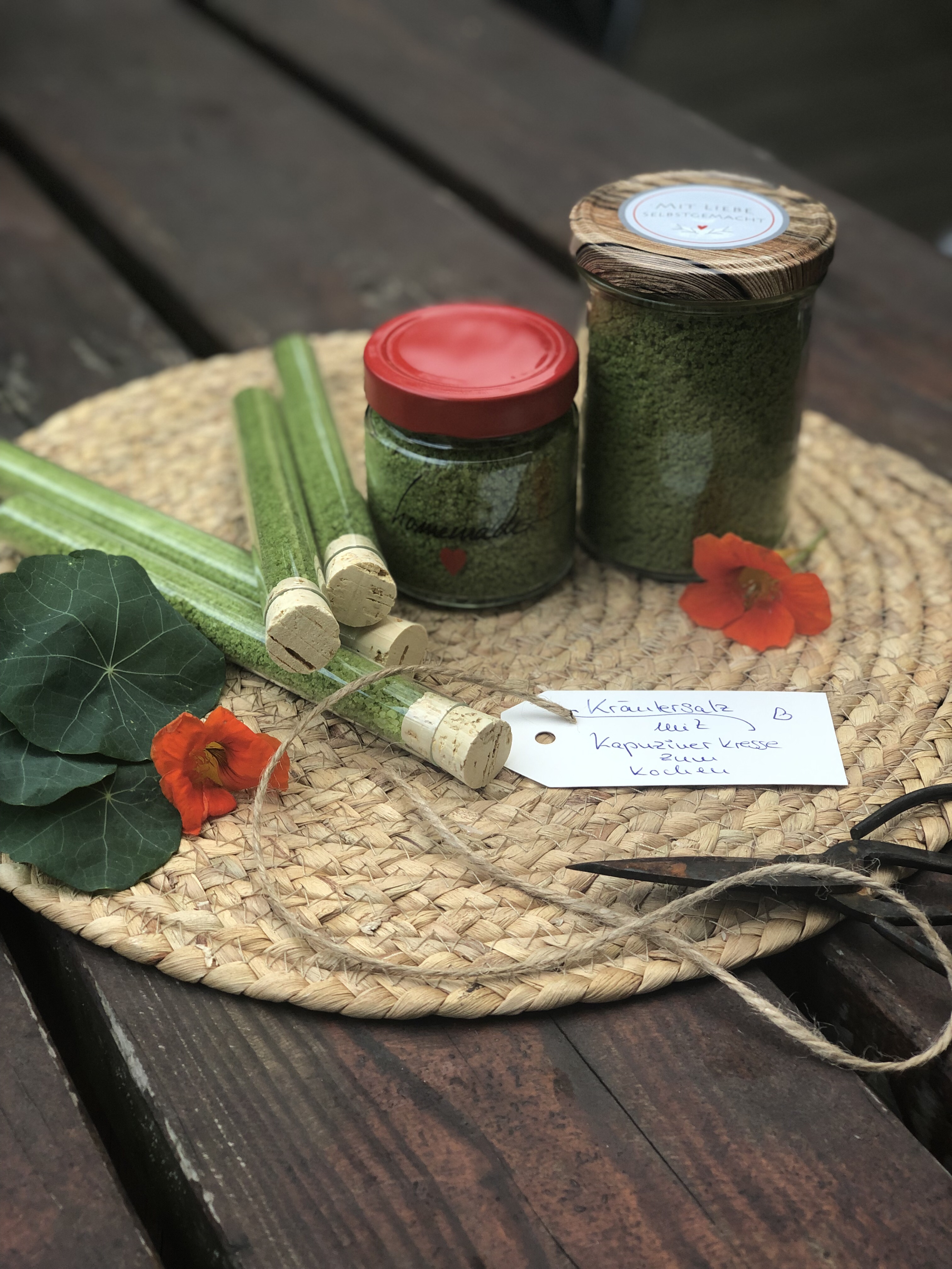 Und weil ich gerade so dabei war, habe ich mir auch wieder mein Salz von den Blättern der Kapuzinerkresse zubereitet.