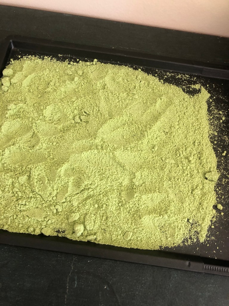 Nun habe ich das Salz auf ein Backblech verteilt und über Nacht trocknen lassen. Dadurch soll der Geschmack intensiver werden. Am nächsten Tag habe ich das Salz im Ofen bei 40 Grad für weitere 3,5 Stunden getrocknet – und fertig ist das aromatische und würzige Kräutersalz ohne viel Aufwand.