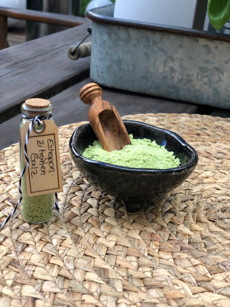 Ich stelle das Salz hauptsächlich für unseren Eigengebrauch her, aber verschenke es auch gerne als Gastgeschenk oder auch als Mitbringsel zum Beispiel zum Gartenfest.