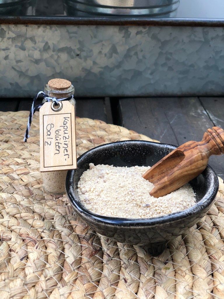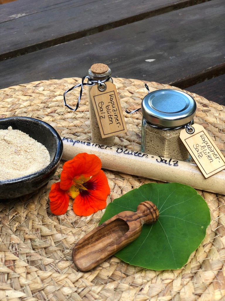 Nun möchte ich Euch noch das Rezept für das Salz mit den Blüten der Kapuzinerkresse geben.