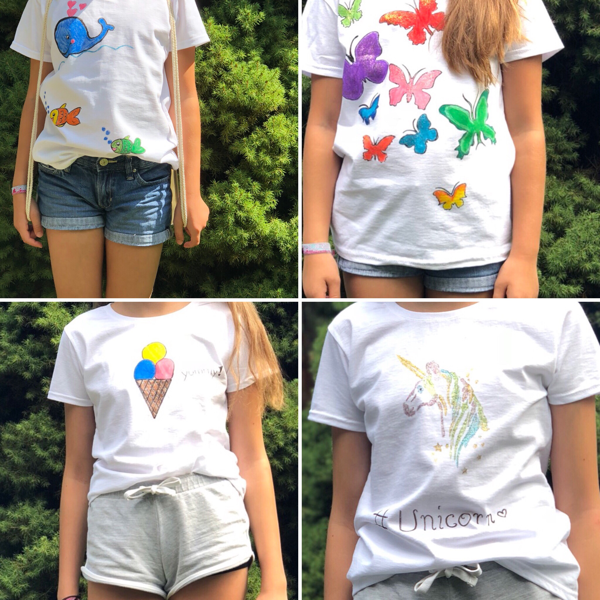 Und wie soll es auch anders sein, bei „Tante“ Elly wird natürlich gebastelt. Ich habe mit den beiden T- Shirts und Beutel mit Textilfarbstiften bemalt. Ich bin total begeistert von der Kreativität der beiden Mädels.