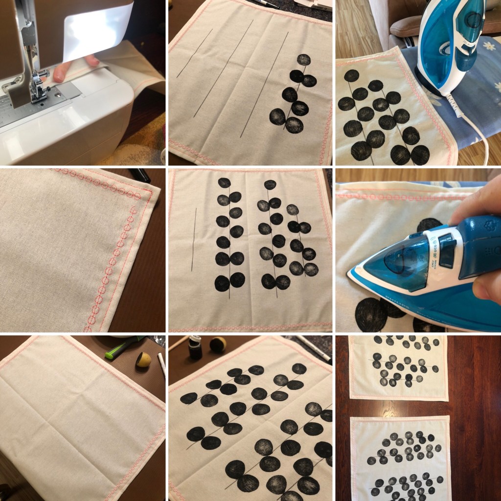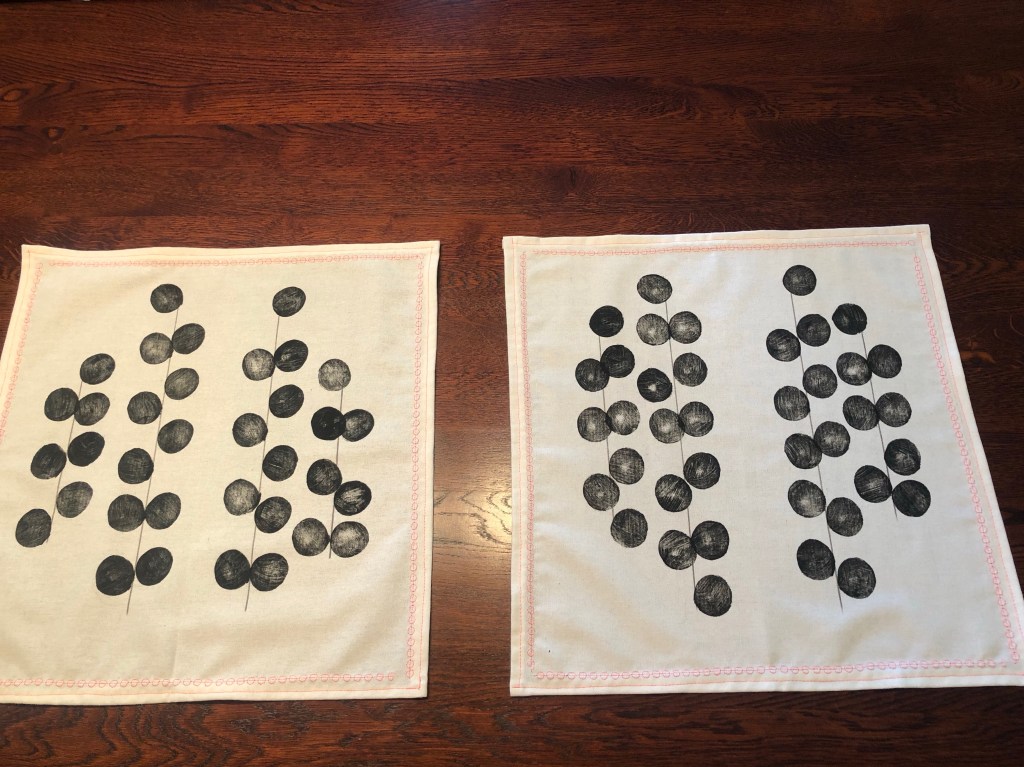 Während meine Freundin Ina für mich den Stoff zu zwei Servietten genäht hat, habe ich die Platzsets von Tchibo bedruckt.