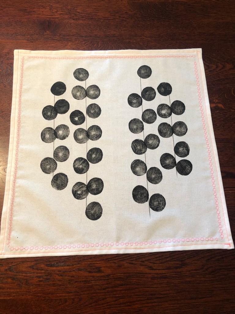 Und weil das Stempeln so viel Spaß macht, habe ich nach dem gleichen Prinzip noch ein Kissenbezug bestempelt.