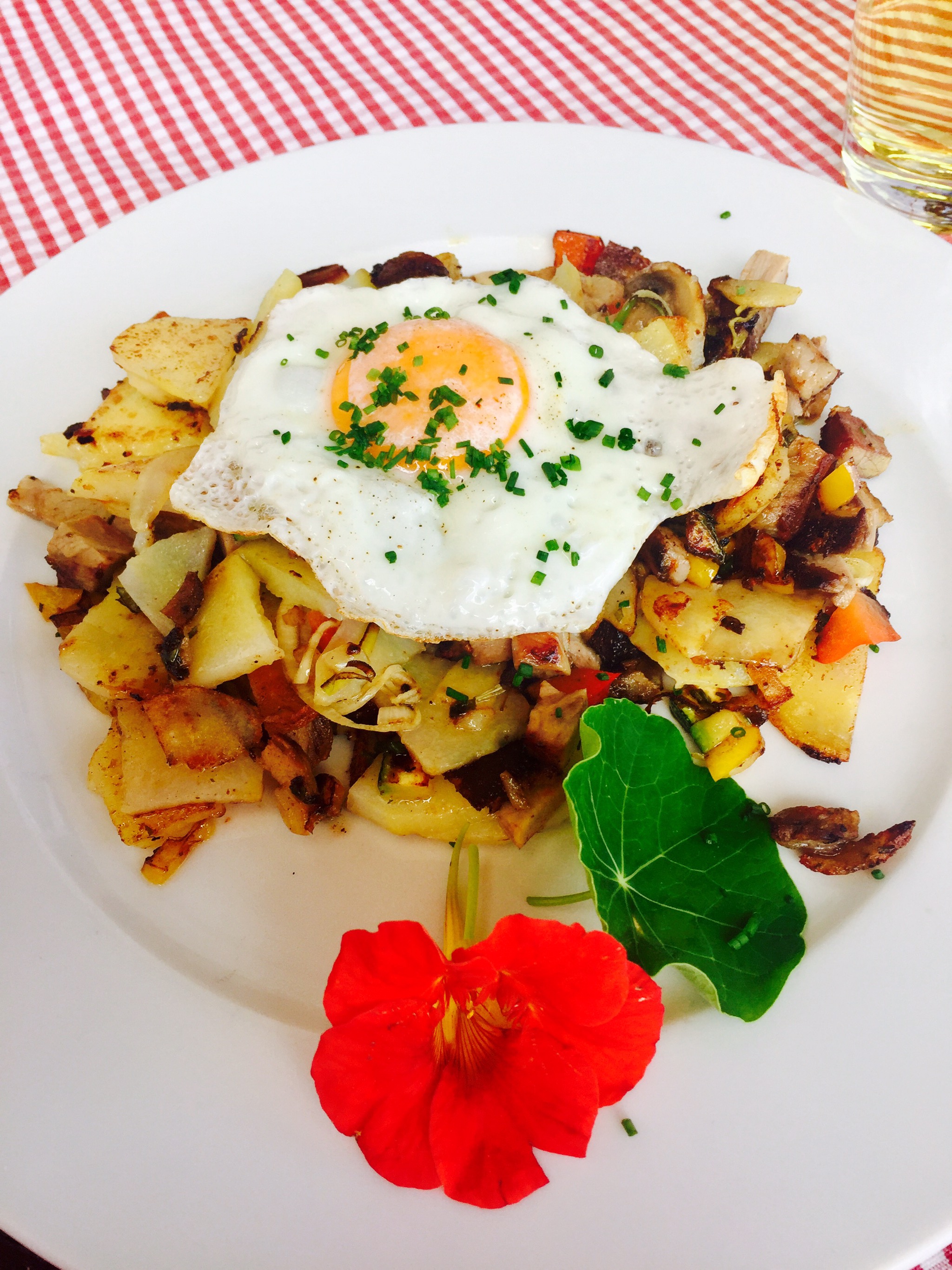 Auch sehr lecker waren die Tiroler Gröstel mit Spiegelei. Das sind einfach Bratkartoffeln mit Speck und Bratenresten und dazu ein Spiegelei – das hat mir mal wieder gezeigt man muss nicht immer wieder nach was neuen und exotischen in der Küche suchen, man sollte sich mal wieder auf das einfache und heimische konzentrieren.