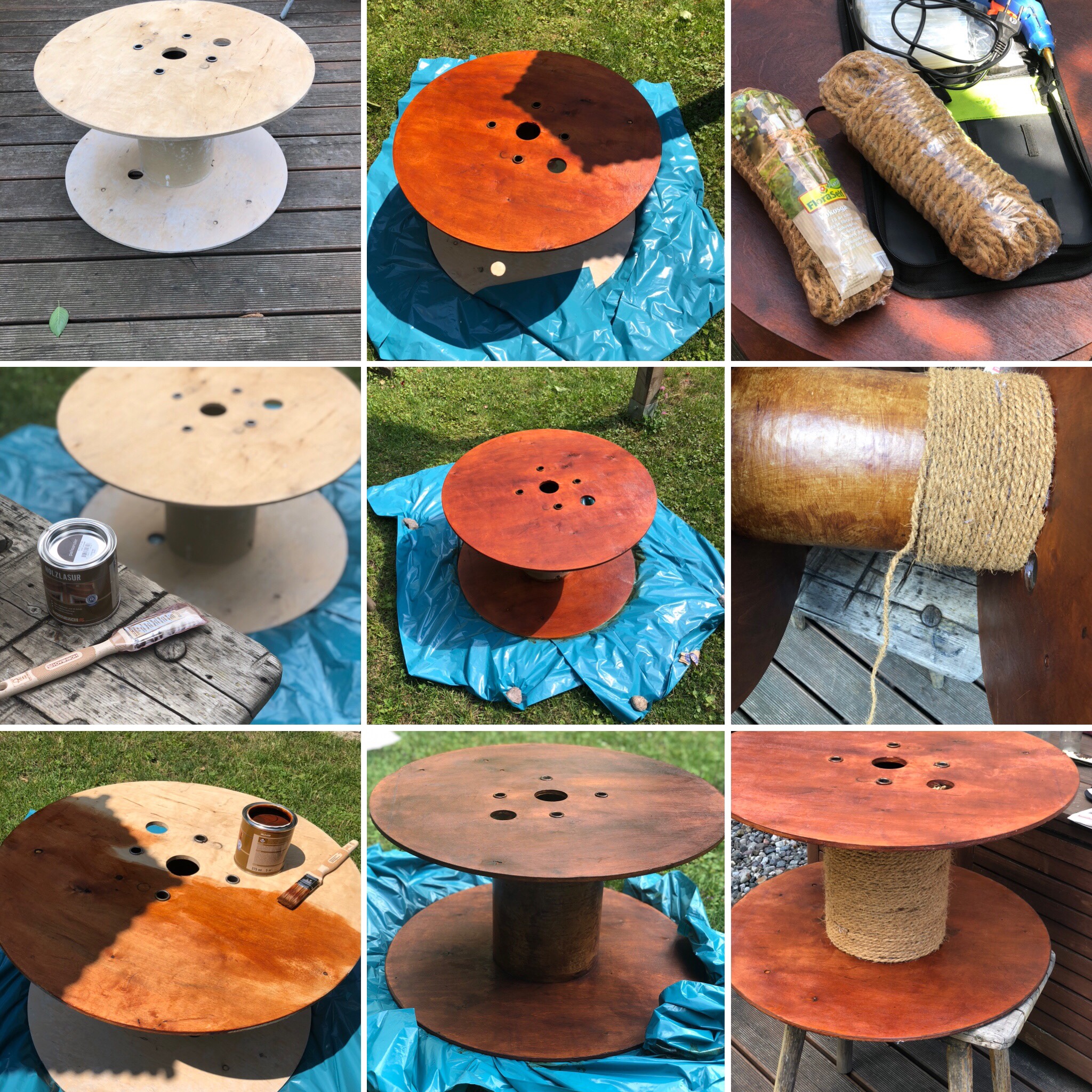 wir gönnen uns gerade ein laaaaaaanges Wochenende. Und da das Wetter die ersten Tage so schön mitgespielt hat, haben wir im Garten gewerkelt. Aber da man sich im Garten ja auch ein bisschen erholen möchte, haben wir auch unsere Sonnenliegen aufgestellt. Und was hat gefehlt eine Möglichkeit die Getränke abzustellen. Da habe ich mal so geschaut, was es für Möglichkeiten zu kaufen gibt. Aber ehrlich gesagt, finde ich, dass alle Produkte wo Outdoor drauf steht sehr teuer sind. Und da kam mir die Idee noch ein Bestelltisch aus einer alten Holzkabeltrommel zu machen. Letztes Jahr habe ich auch schon zwei Varianten davon gemacht (findet Ihr auch in meinen Blog). Ich hatte noch weiße Wetterschutzfarbe übrig von meinen Paletten – Pflanztisch und so hat mich mein neuer Beistelltisch eigentlich nichts gekostet.