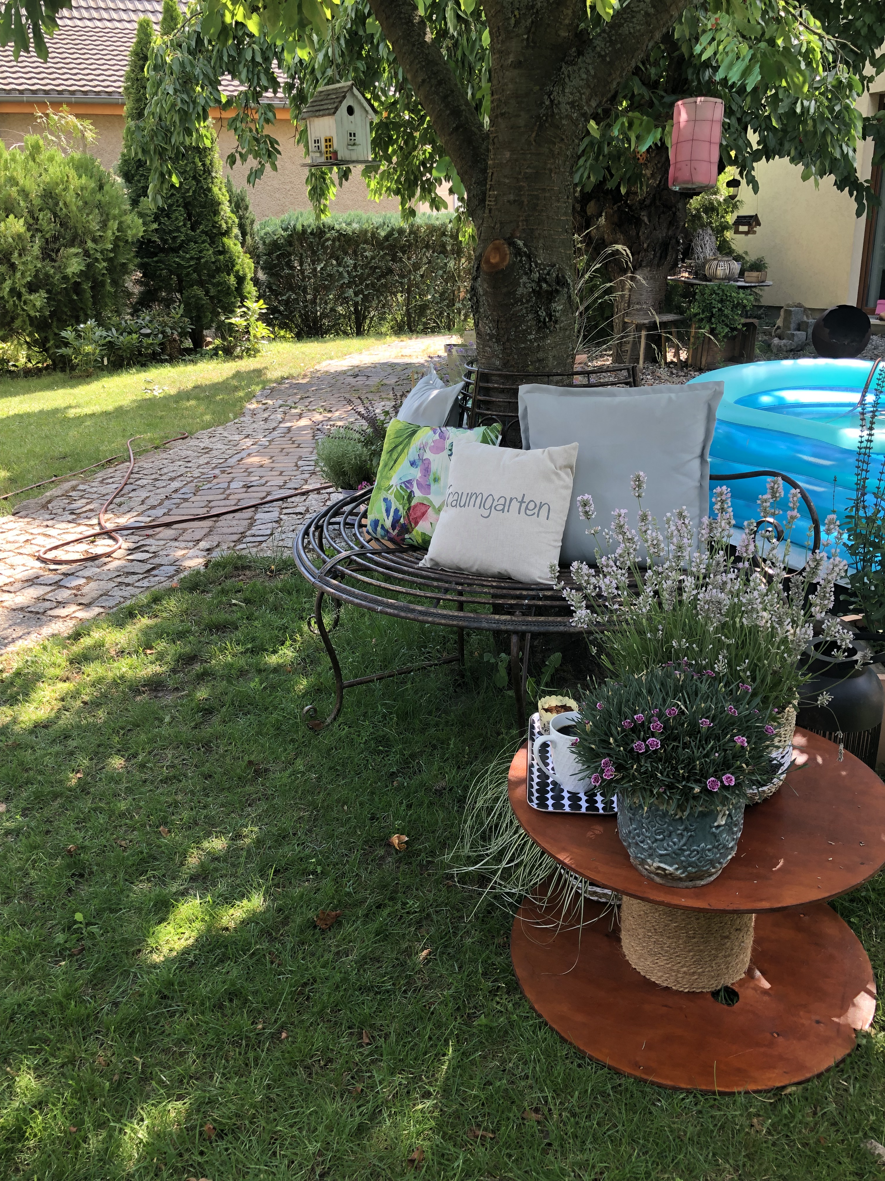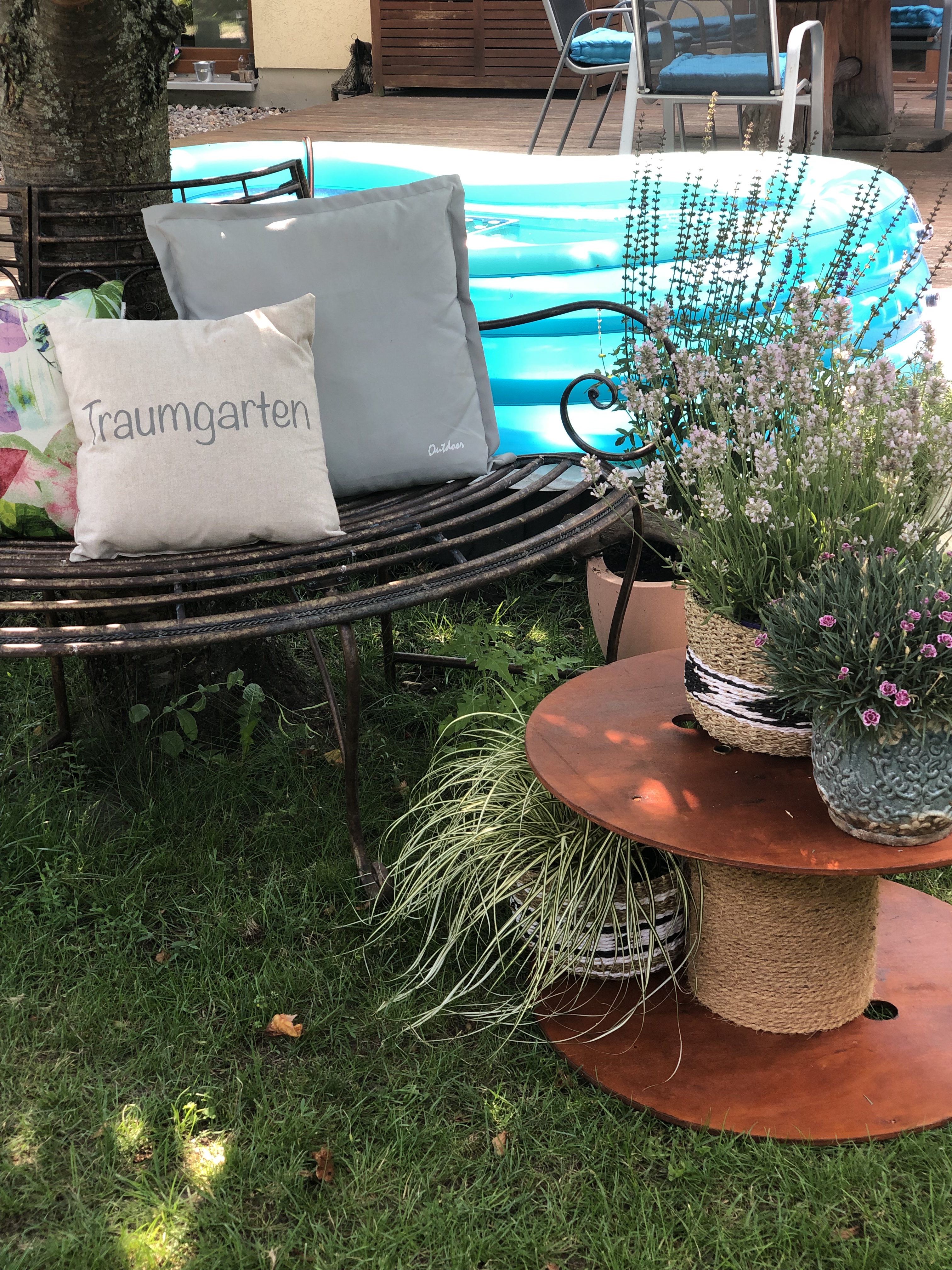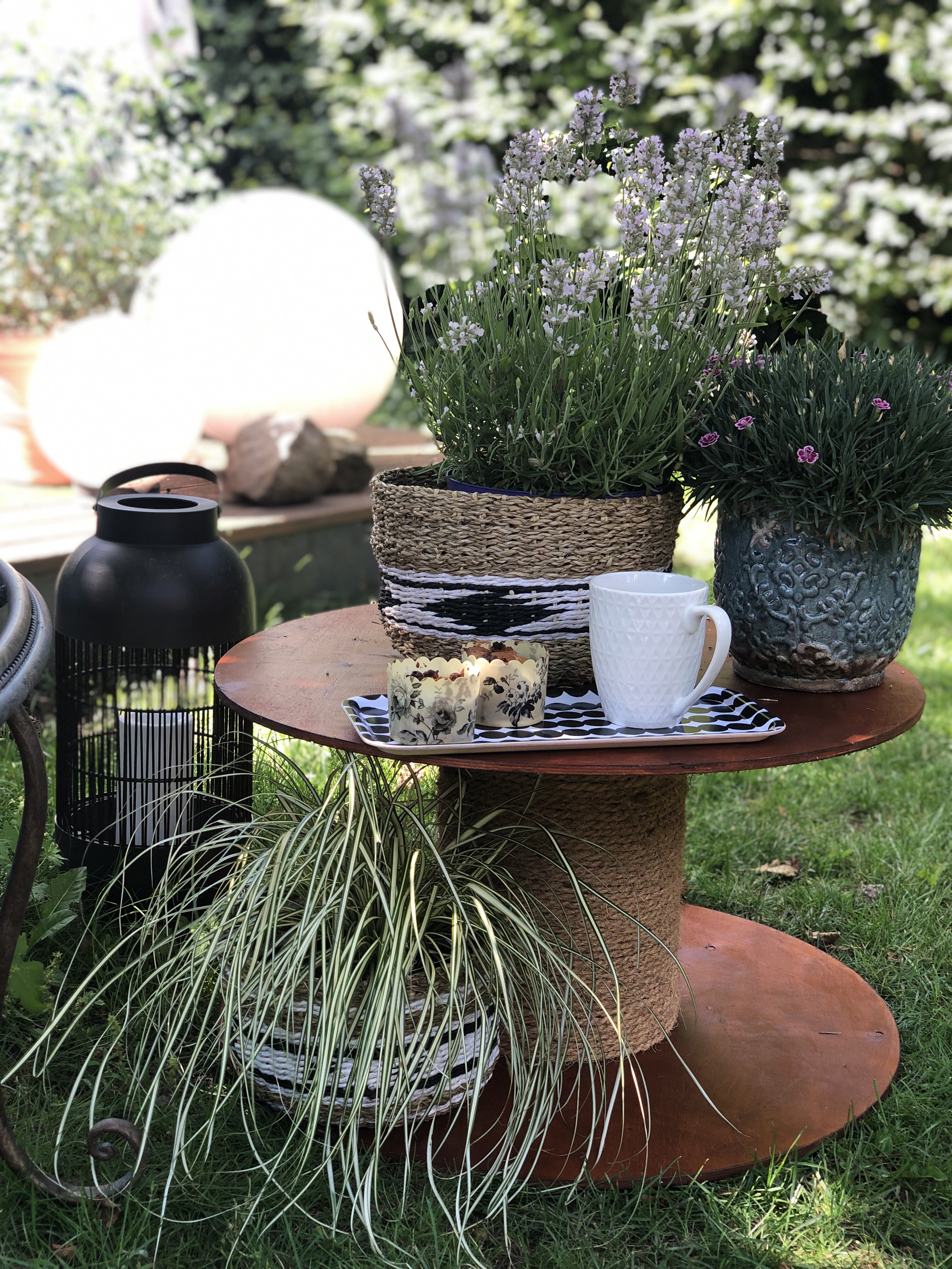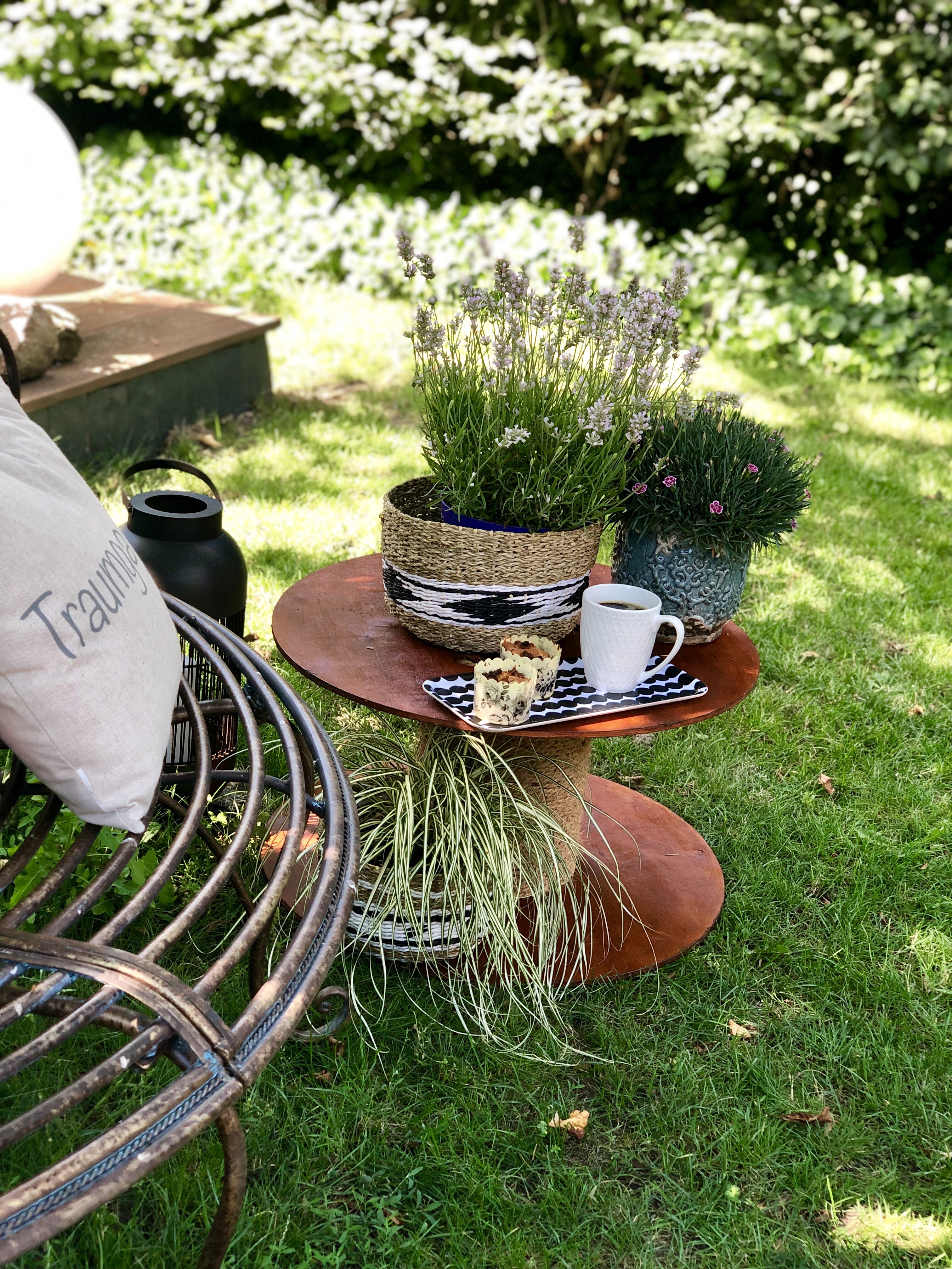 Jetzt haben wir eine schöne Ecke zum Sonnen und Genießen im Garten. Ich bin richtig happy damit wie schön der Beistelltisch in weiß aussieht.