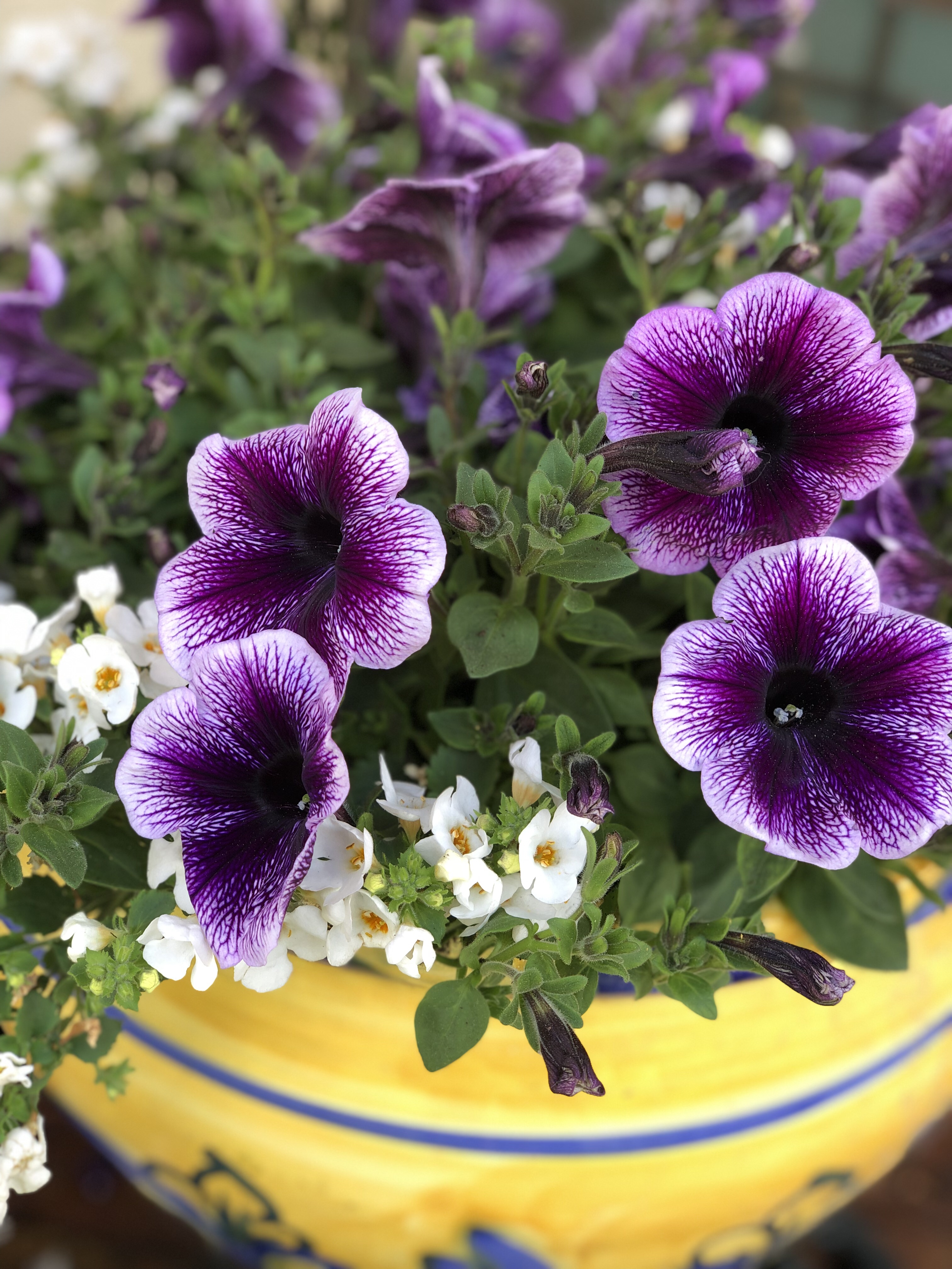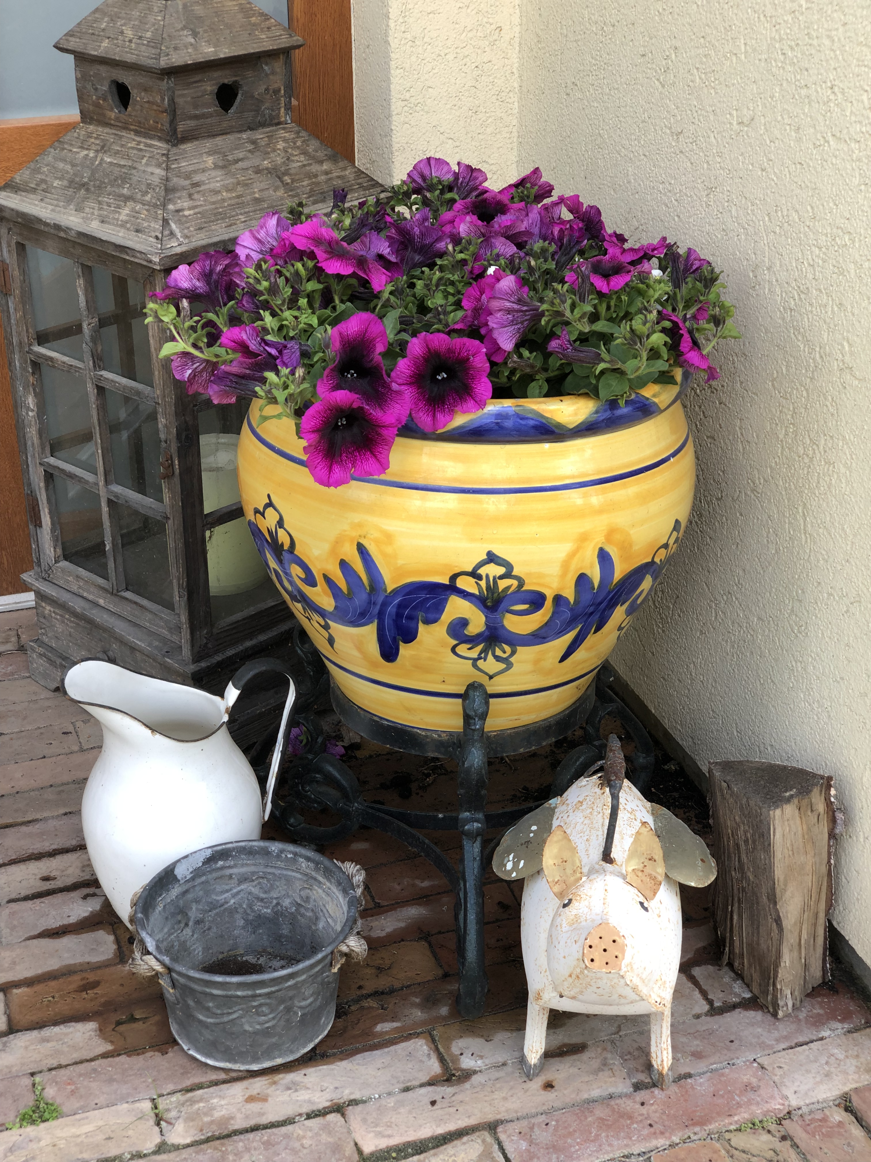 Außerdem habe ich mit meiner Sommerbepflanzung angefangen. Mein Eingangsbereich habe ich mit schönen gelb – blauen Keramiktöpfen gestaltet. Diese bringen schon ohne Blumen gute Laune. Aber ohne Blumen wäre es auch etwas langweilig. Deshalb habe ich diese mit unterschiedlichen Petunienarten bepflanzt. Petunien gehören mit zu meinen Lieblingsblumen.